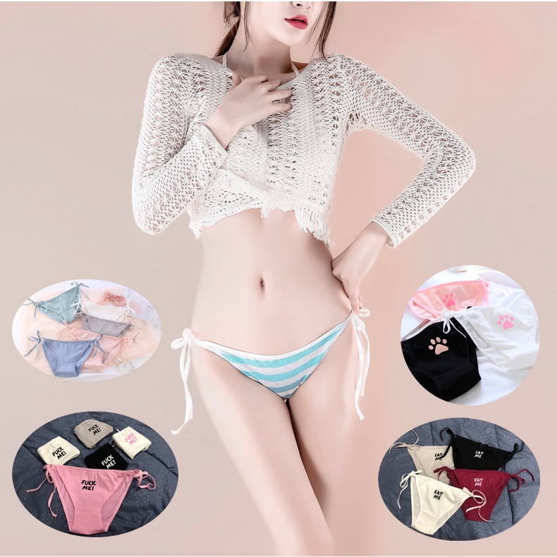 A-77 กางเกงในหญิงน่ารัก เซ็กซี่ กางเกงในทรงบิกินี่ แฟชั่นแบบผูกข้าง เอวต่ำ กางเกงในลายน่ารัก กางเกงในแบบผูก พร้อมส่ง