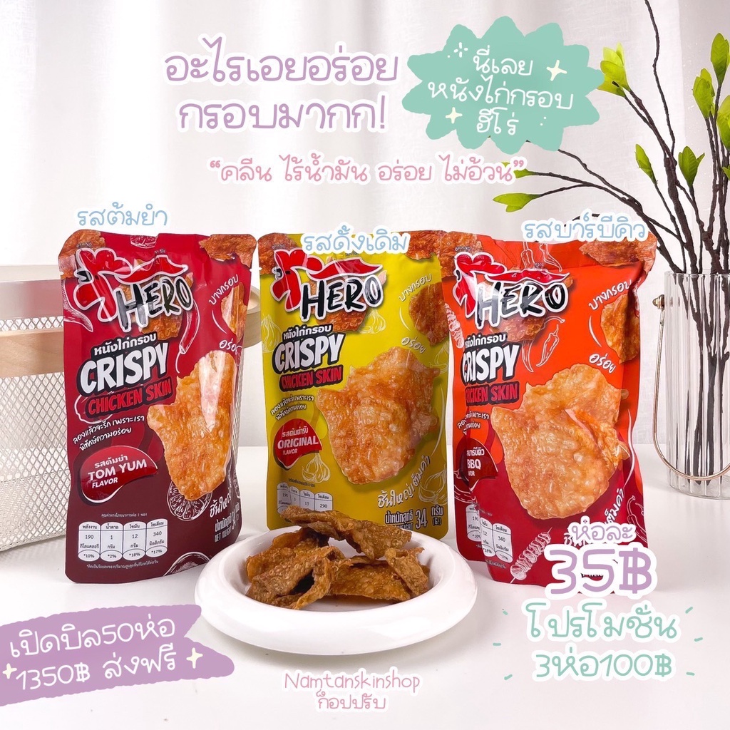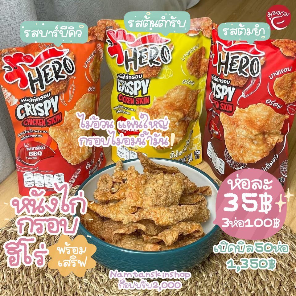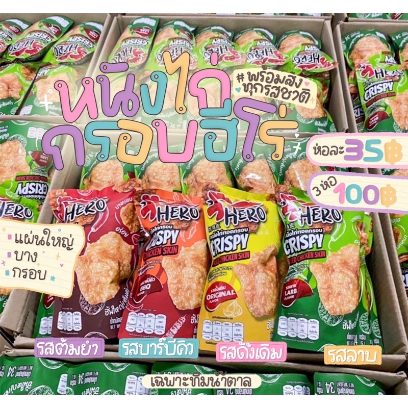 หนังไก่กรอบฮีโร่🐔✨ คลีน ไร้น้ำมัน อร่อย ไม่อ้วน‼️ มีให้เลือก 3 รส ถ้าได้ลองแล้วน้องจะติดใจ ไม่เหมือนใครเพราะอร่อยมาก