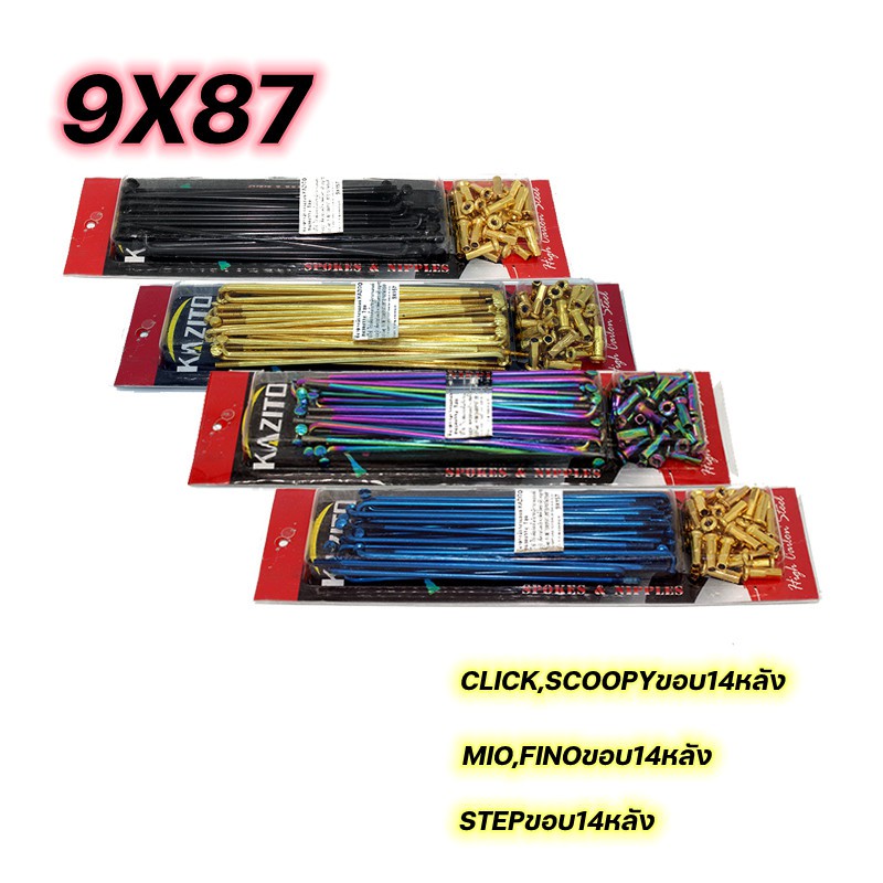[ใส่โค้ดลดเพิ่ม MTCHECK88] ซี่ลวดสี KAZITO ขายเป็นกล่อง(ข้างเดียว)มีสีทอง รุ้ง ดำ น้ำเงิน ราคาถูก SPOKES&NIPPLES