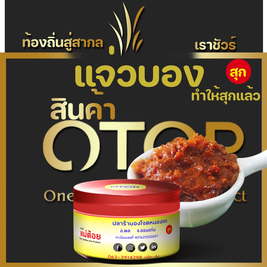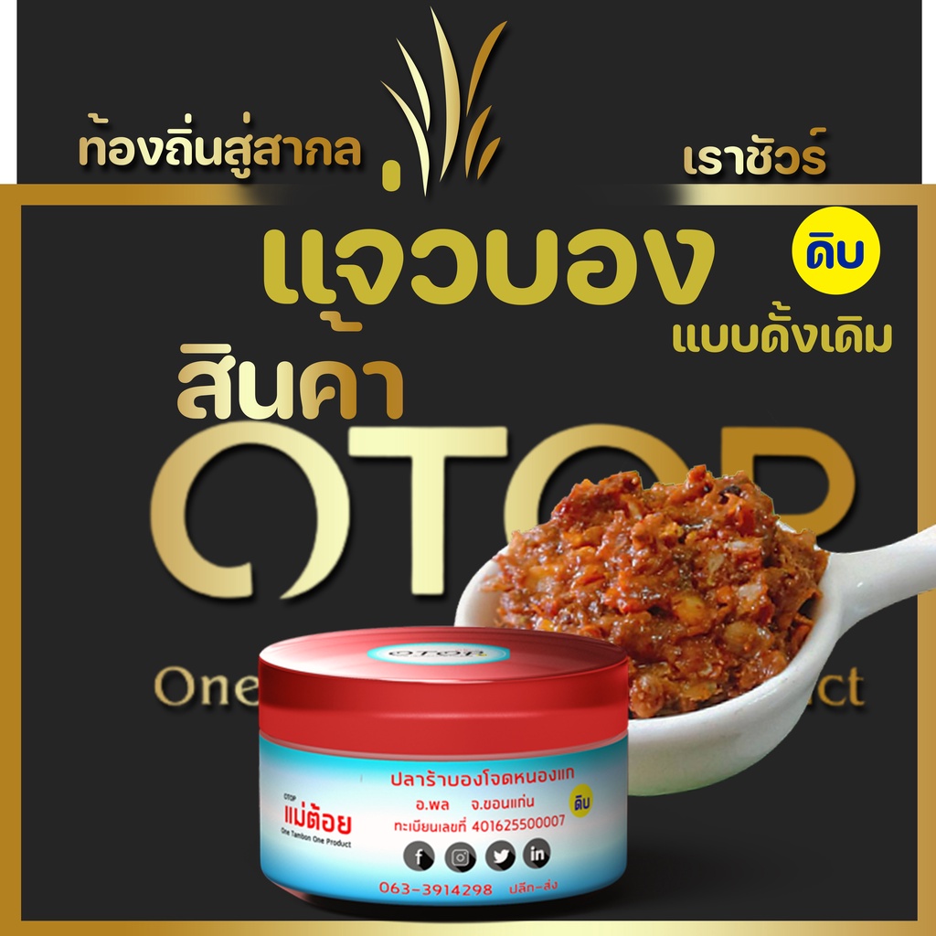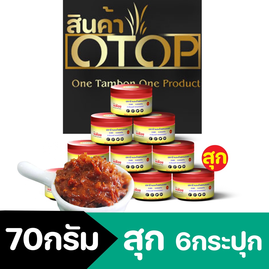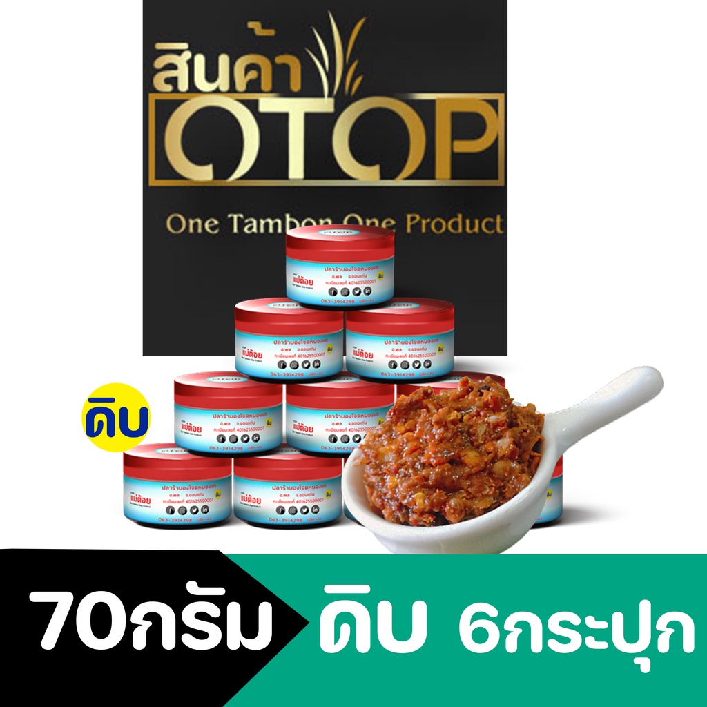 แจ่วปลาร้าพรีเมี่ยม สินค้าOTOP Thailand แจ่วบอง น้ำพริกปลาร้าบองผัดสุก น้ำหนัก70กรัม"การันตีผลิตใหม่ทุกวัน" จำนวน6กระปุก