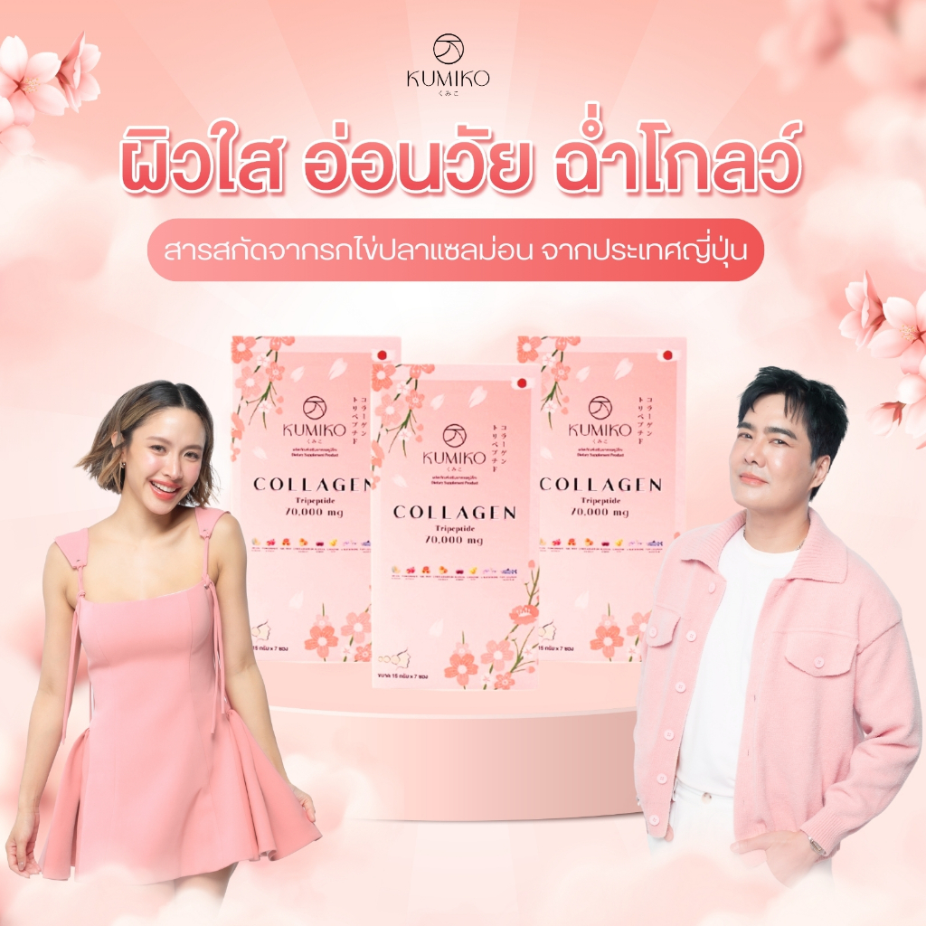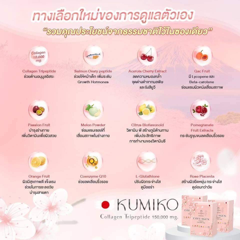 (3กล่องสุดคุ้ม) KUMIKO COLLAGEN คอลลาเจนแท้ นำเข้าจากญี่ปุ่น ขนาด 7ซอง ผิวใส ฝ้ากระ สิว หน้าเด็ก