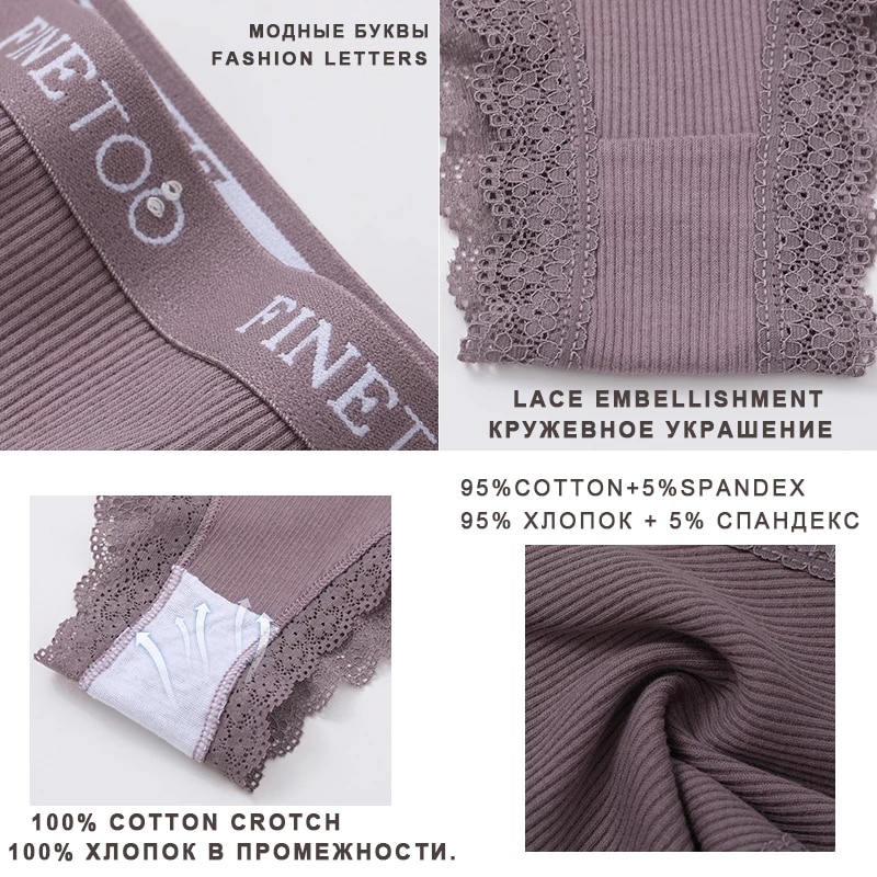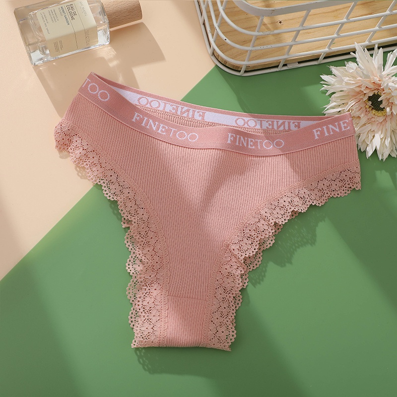 Allofme กางเกงชั้นในสําหรับสตรีผ้าฝ้ายเซ็กซี่ปักลายลูกไม้ขนาดพลัสไซส์ M-2Xl