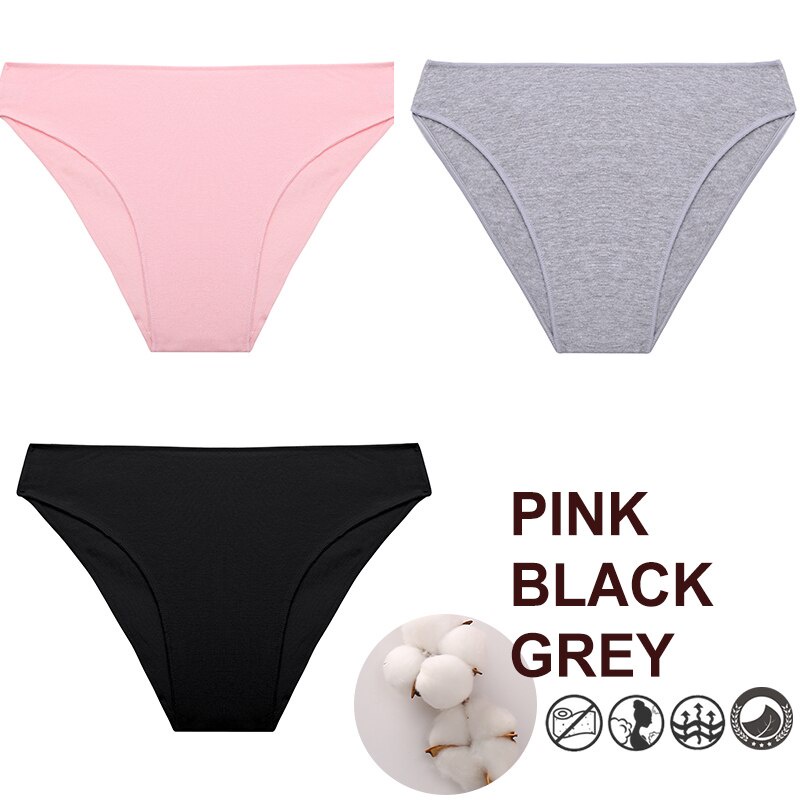 Allofme กางเกงชั้นใน ผ้าฝ้าย สีพื้น สําหรับผู้หญิง 3 ชิ้น / ชุด