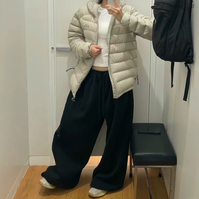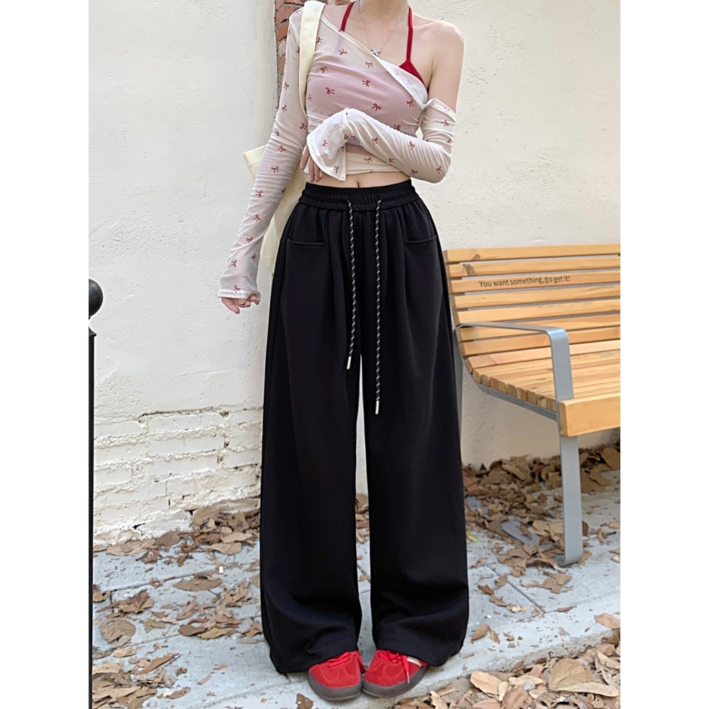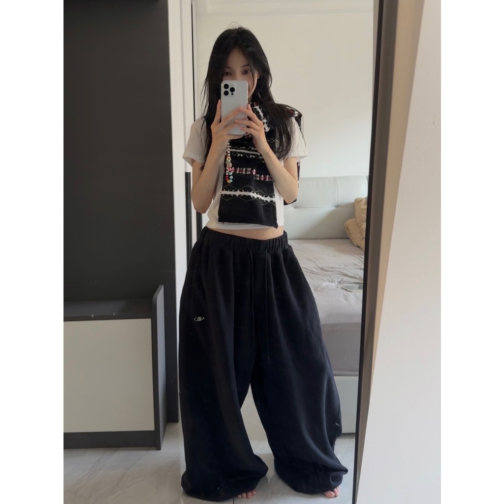 cherryshop พร้อมส่ง กางเกงวอร์มขากว้างเอวสูงสไตล์ย้อนยุคสำหรับผู้หญิง เหมาะสำหรับฤดูใบไม้ผลิและฤดูใบไม้ร่วง ลำลองหลวมๆ