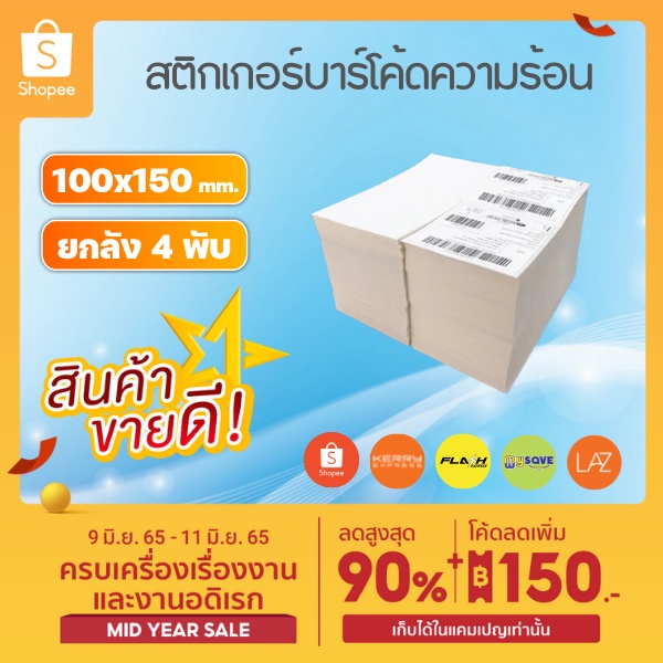 🔥ถูกที่สุด🔥สติกเกอร์ลาเบล ขนาด 100x150 mm. แบบพับ 500แผ่น (ยกลัง 4พับ) สติกเกอร์ความร้อน ไม่ต้องใช้หมึก
