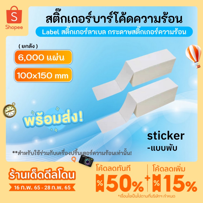 🔥ใช้โค้ด 168CHO20🔥สติ๊กเกอร์ลาเบล 100x150mm (ยกลัง 6,000แผ่น) แบบพับ สติกเกอร์ความร้อน พิมพ์ฉลากสินค้า ไม่ต้องใช้หมึก