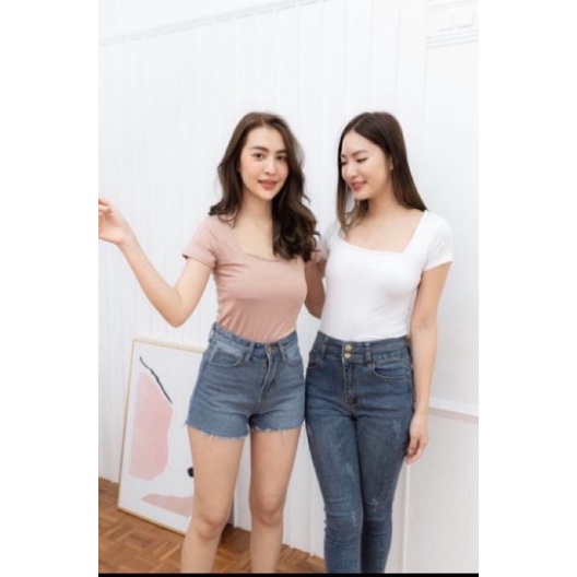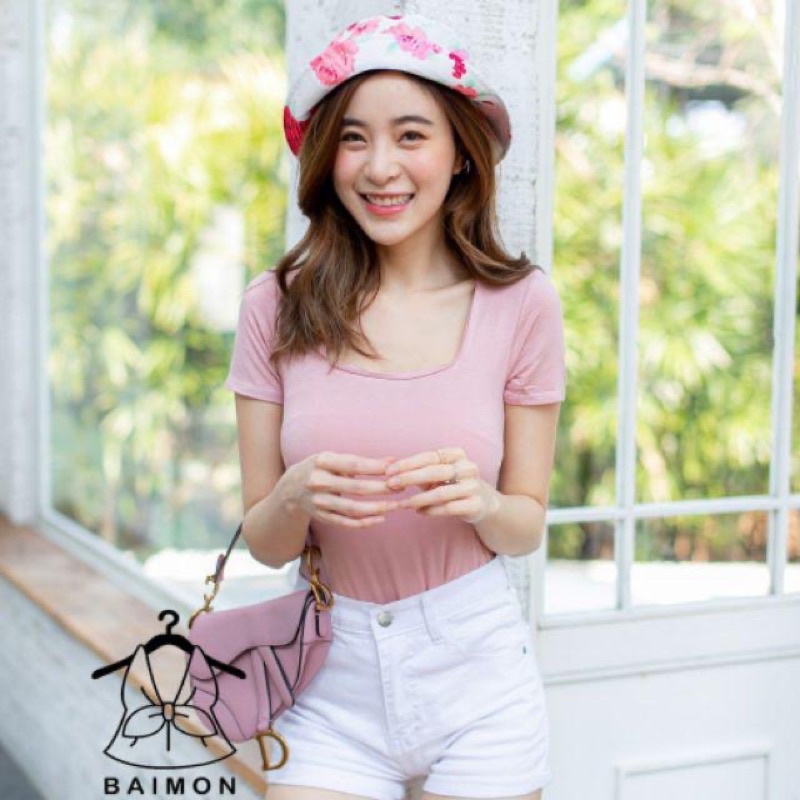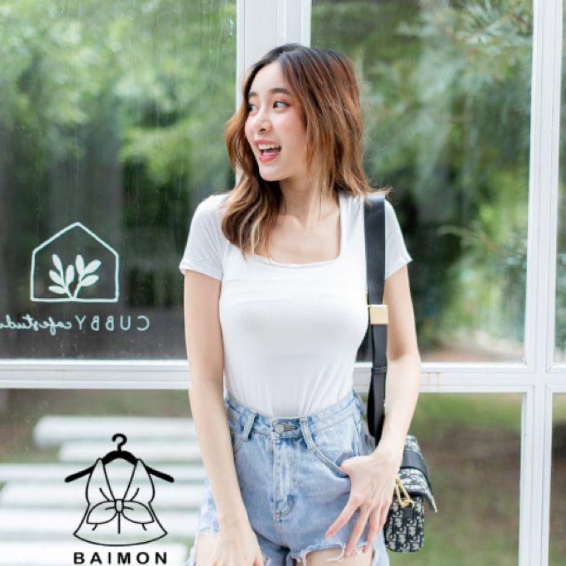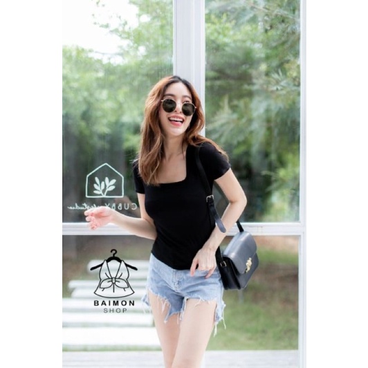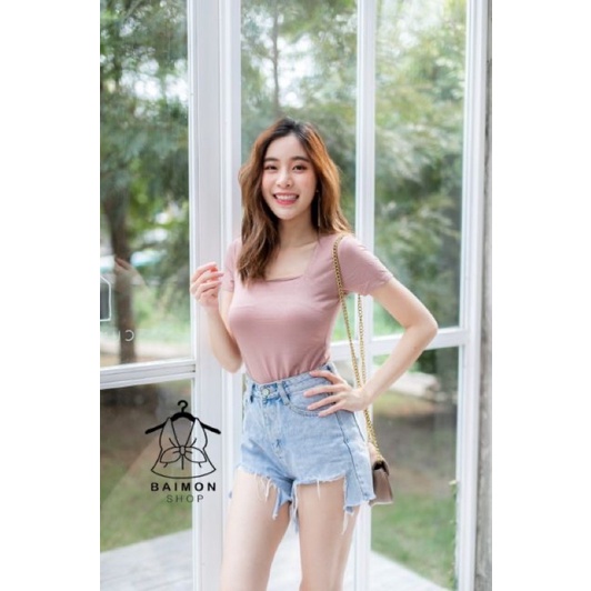 🔥🔥Java wa shop🔥🔥A28เสื้อยืด คอเหลี่ยม เสื้อนมโต แขนสั้นครอปลุคไฮโซ มีซับใน2ชั้น(เสื้อ คอเหลี่ยมแขนสั้น 287 )