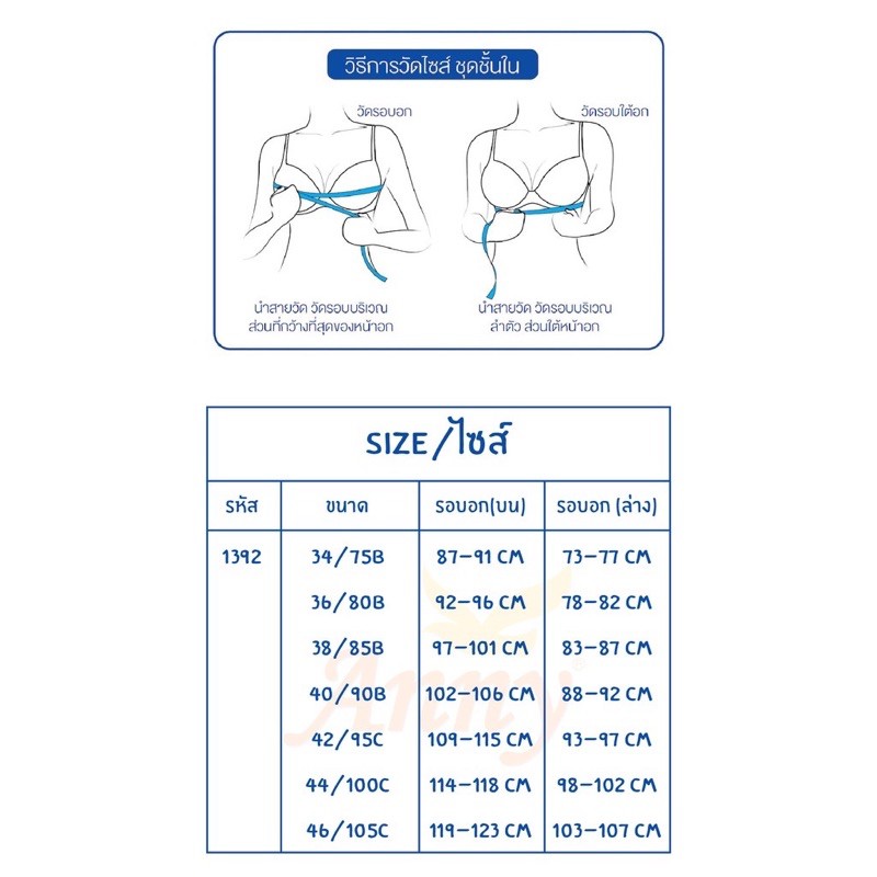 ชุดชั้นใน Anny รุ่น1392 คัพB เสื้อใน 3ตะขอ บรามีโครง เต็มทรง ฟองน้ำนุ่มบาง 4 mm สวมใส่สบาย เก็บข้างดี ใส่กระชับ ทรงอกชิด