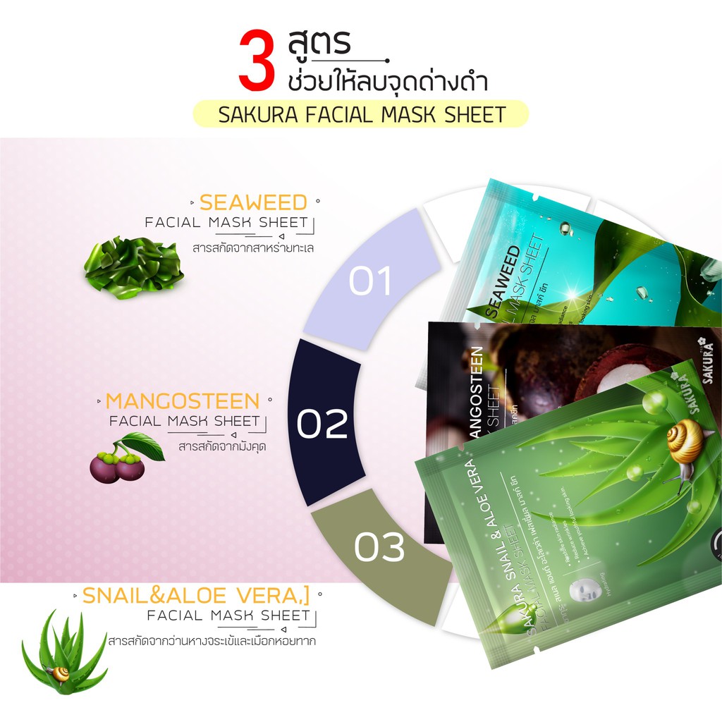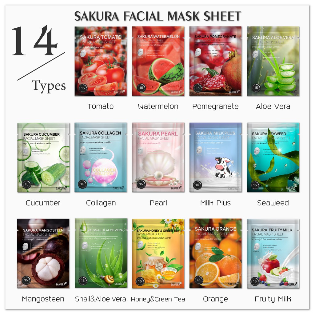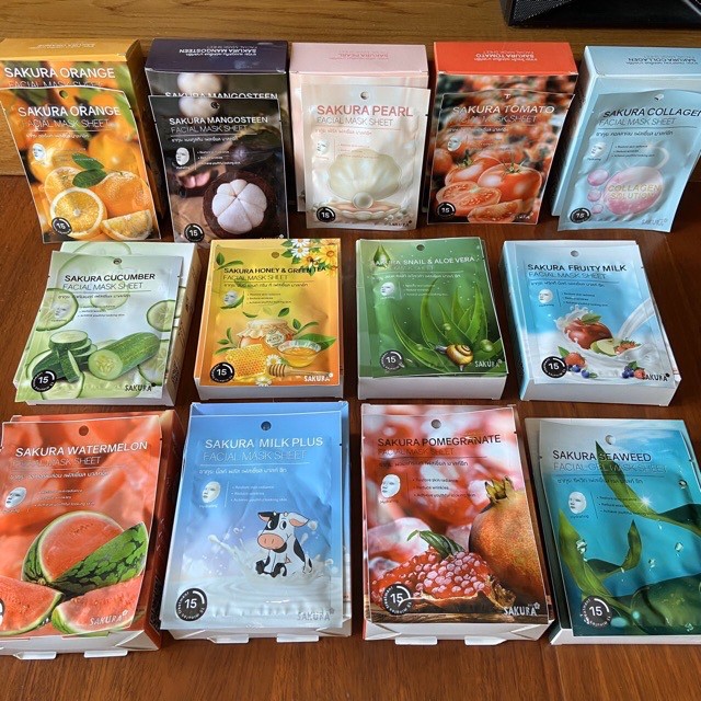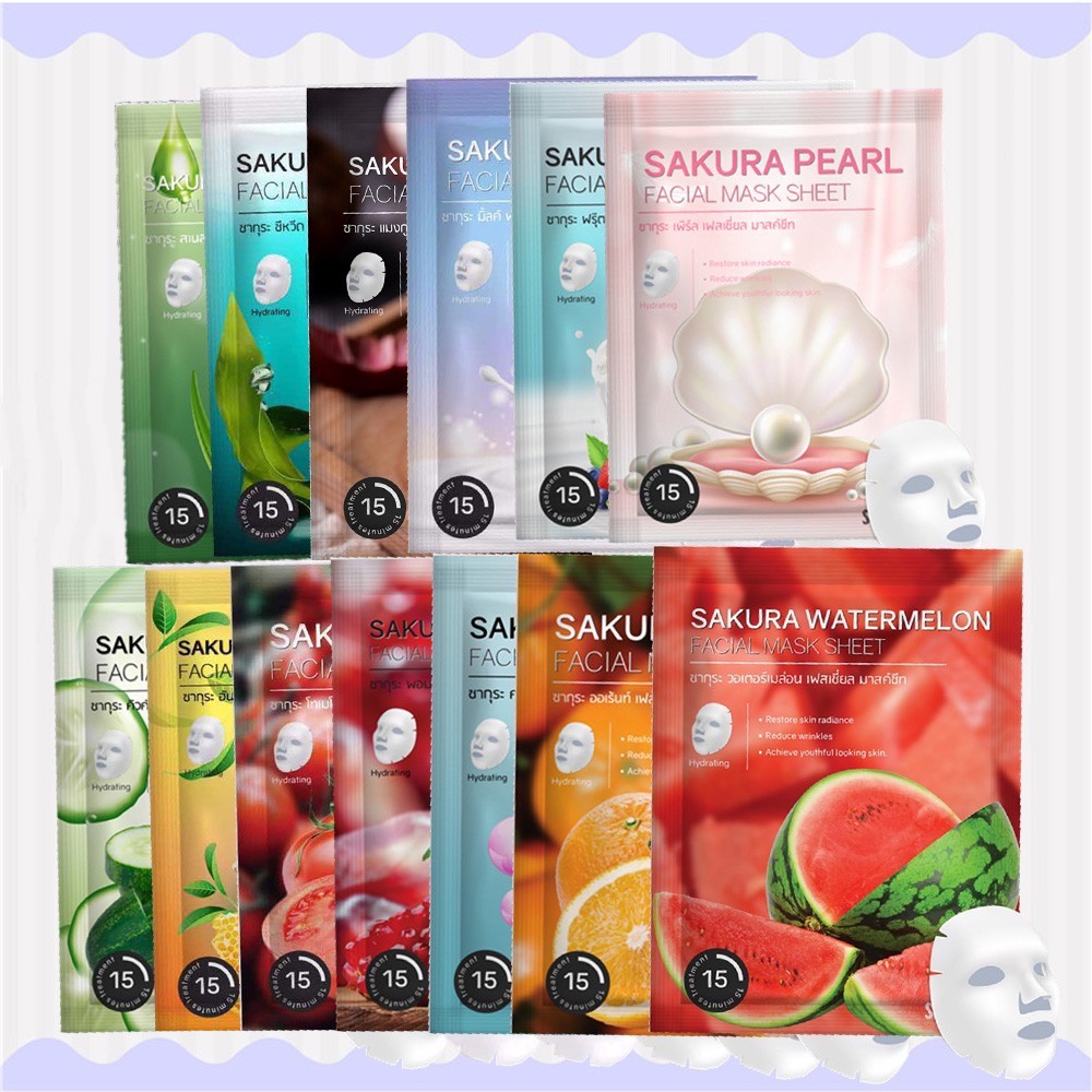 แผ่นมาส์กหน้า 13 สูตร Sakura Facial Mask Sheet ผิวหน้ากระจ่างใส คืนความยืดหยุ่น ผิวเปล่งปลั่ง