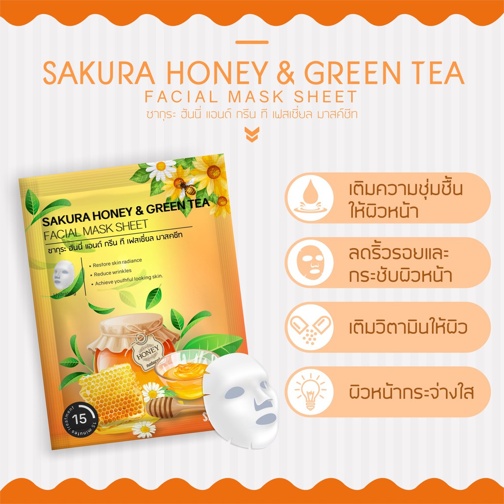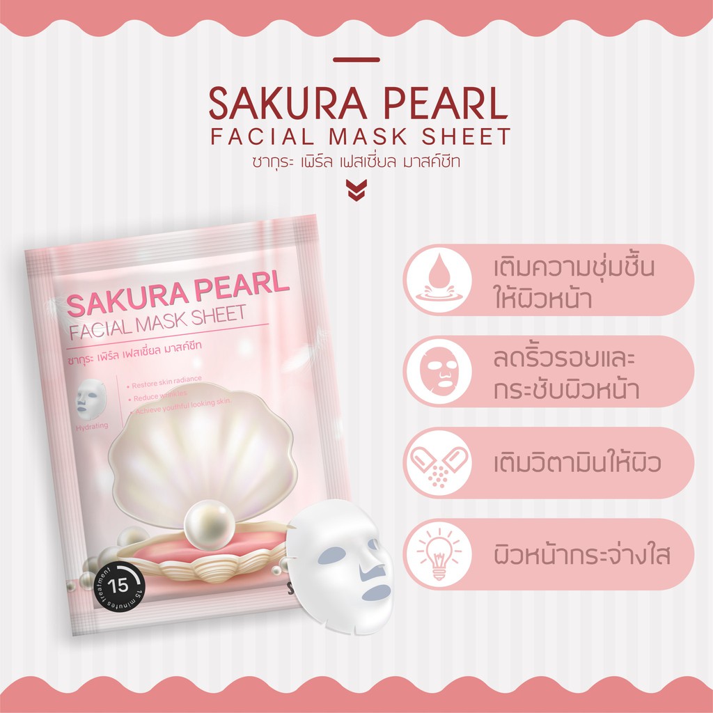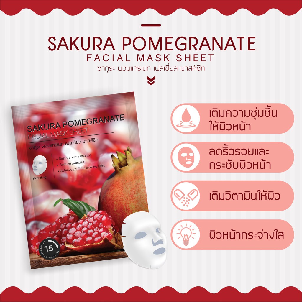 แผ่นมาส์กหน้า 13 สูตร Sakura Facial Mask Sheet ผิวหน้ากระจ่างใส คืนความยืดหยุ่น ผิวเปล่งปลั่ง