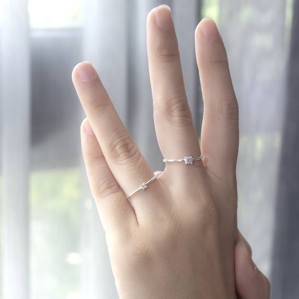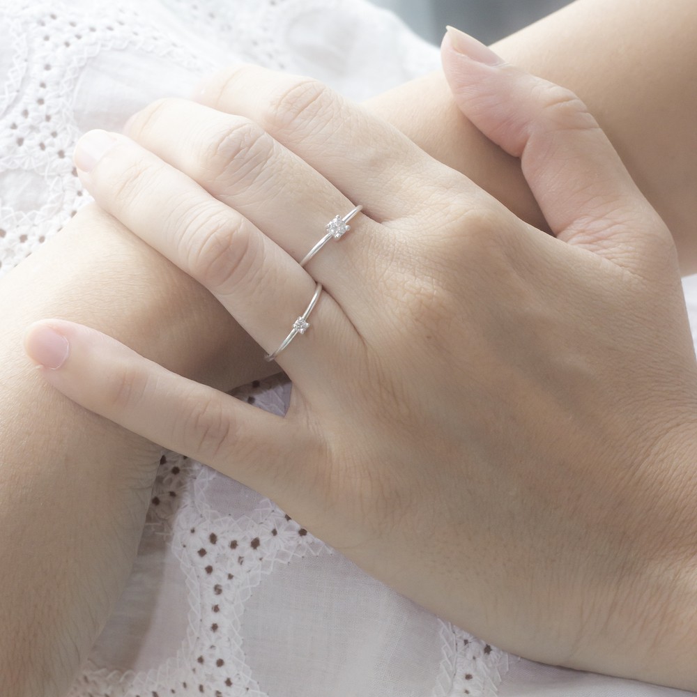 แหวนเงินแท้ 925 silver jewelry แหวนมินิมอล ประดับเพชร CZ รุ่น RS3054, 85-SS