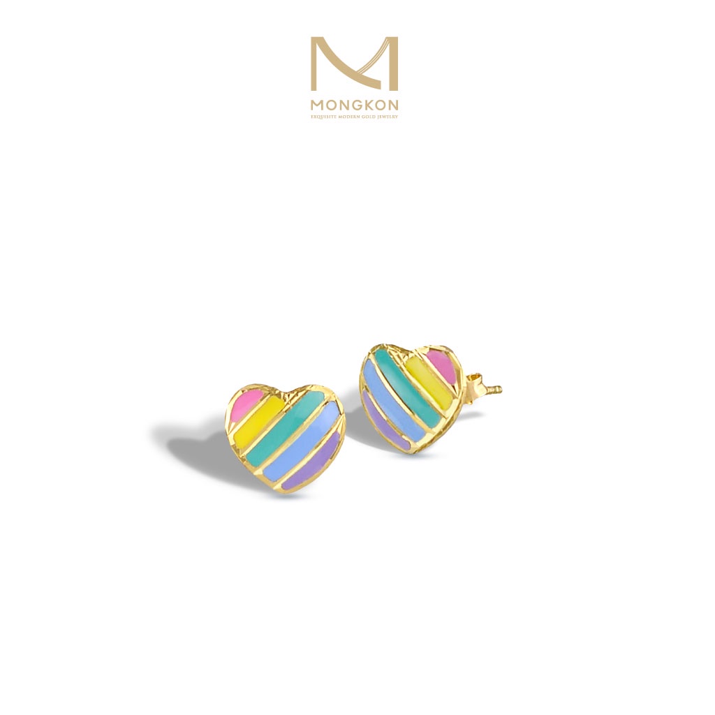 Mongkon Gold ทองคำแท้บริสุทธิ์สูง 96.5% ต่างหู ฉลุหัวใจเรนโบว์ ครึ่งสลึง