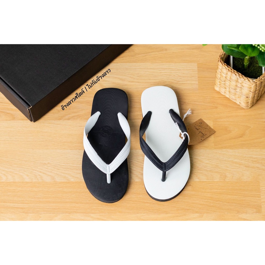 ช้างดาว สลับสีขาว+ดำ DIY ทำมือ แฮนเมด Handmade ของแท้รองเท้าแตะช้างดาว ผู้ชาย ผู้หญิง