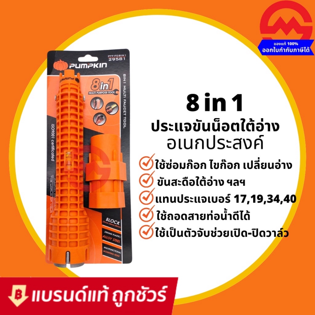 PUMPKIN ประแจขันซิงค์ ประแจขันน๊อตใต้อ่าง(ซิงก์) 8in1 ประแจ ขันน็อต ใต้อ่าง ประแจไข ก๊อกน้ำ อ่างล้างจาน สายน้ำดี