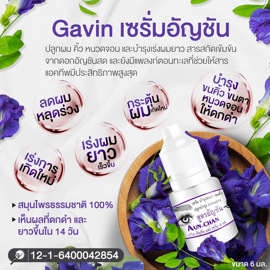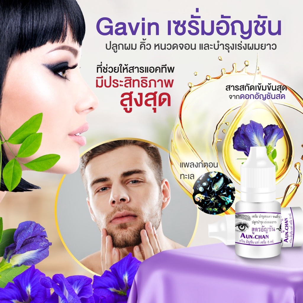 Gavin อัญชัน แฮร์ เซรั่ม เร่งผมยาว เพิ่มผมใหม่ บำรุงขนคิ้ว ขนตา หนวดจอน 6 มล.