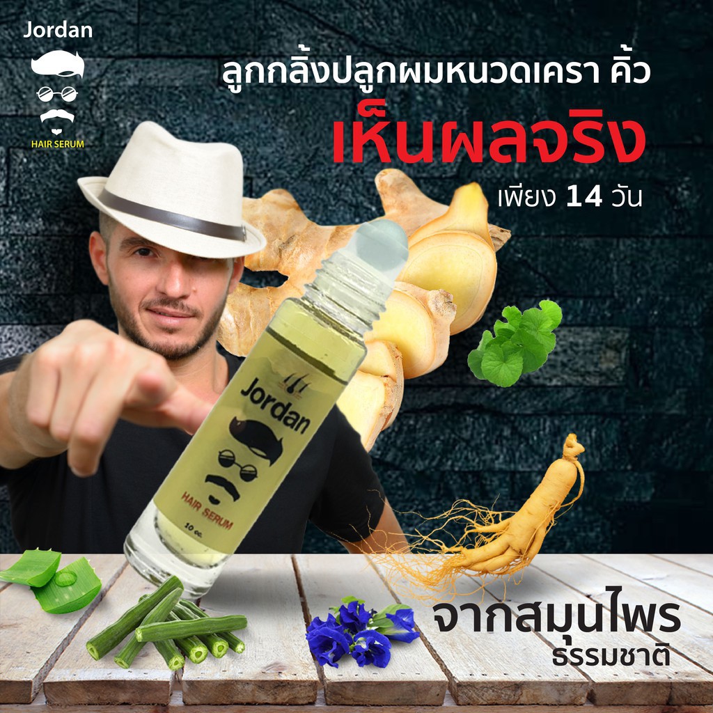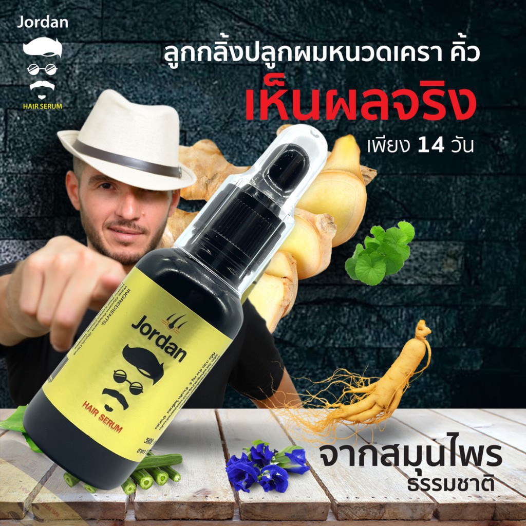 จอร์แดนแฮร์เซรั่ม 30 ml. ปลูกหนวดเครา คิ้ว ผม สารสกัดโสม ขิง ใบบัวบก