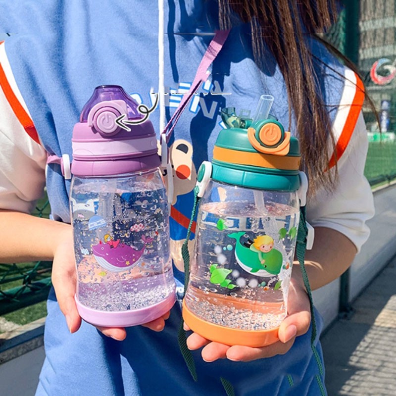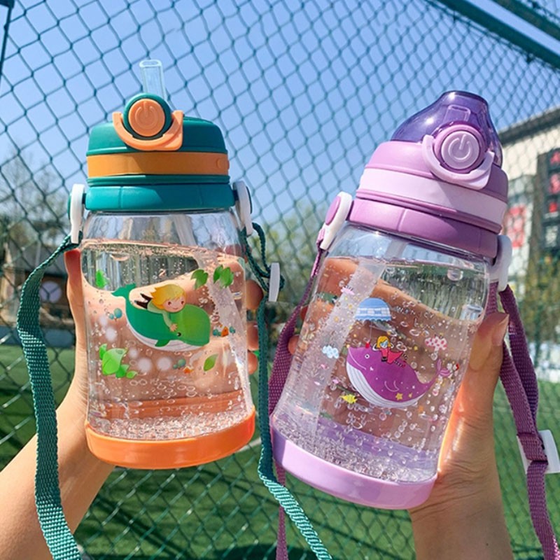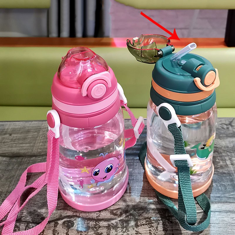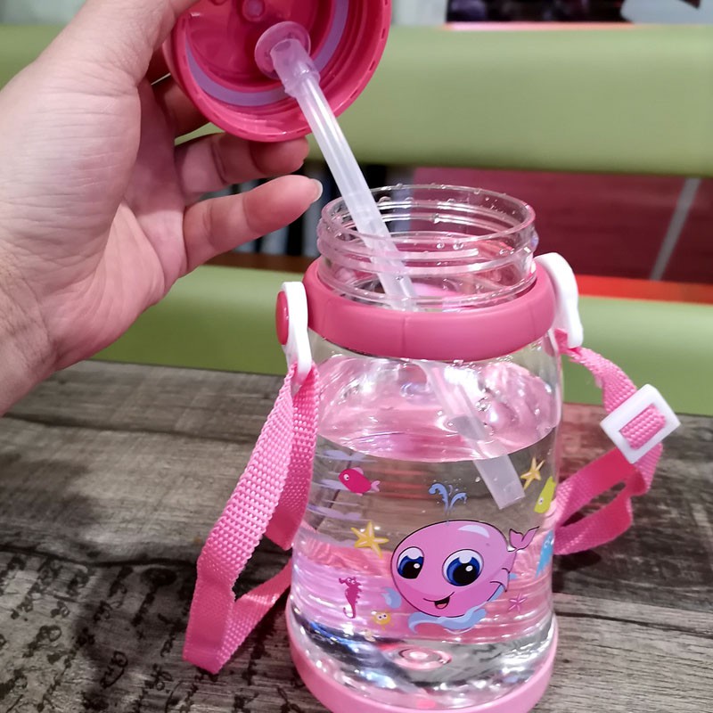 กระบอกน้ำเด็ก แก้วหัดดื่ม กดปุ่มที่ฝาหลอดเด้ง พกพาได้ มีสายสะพาย รุ่น
