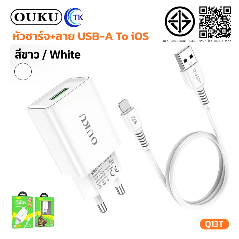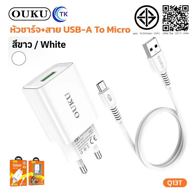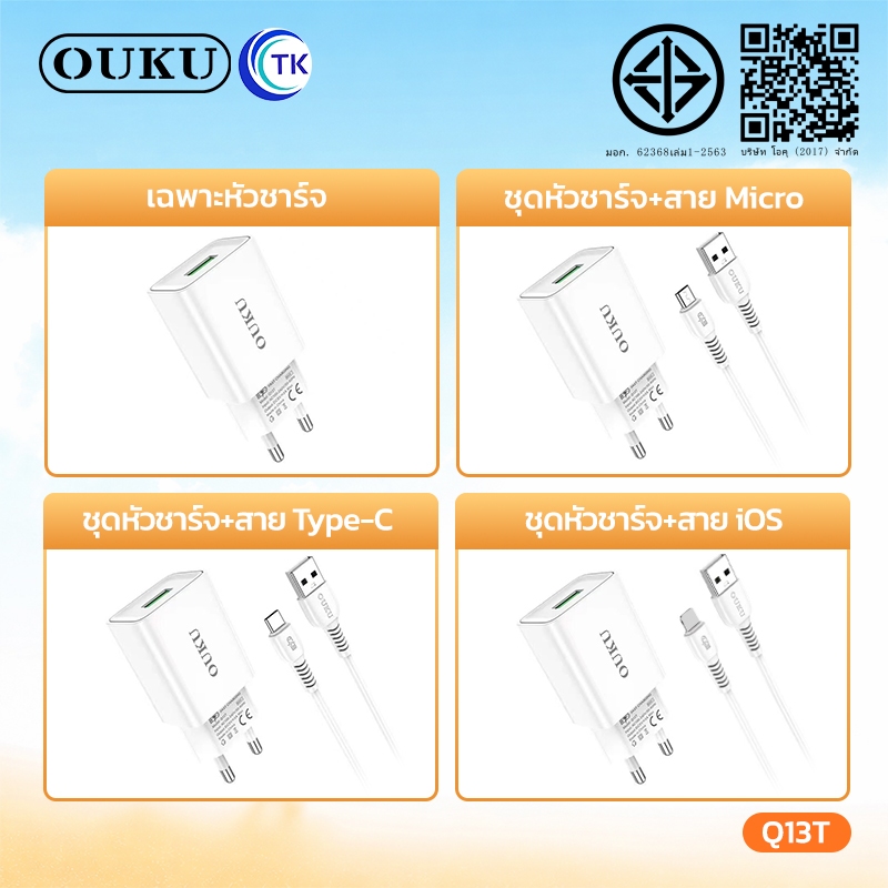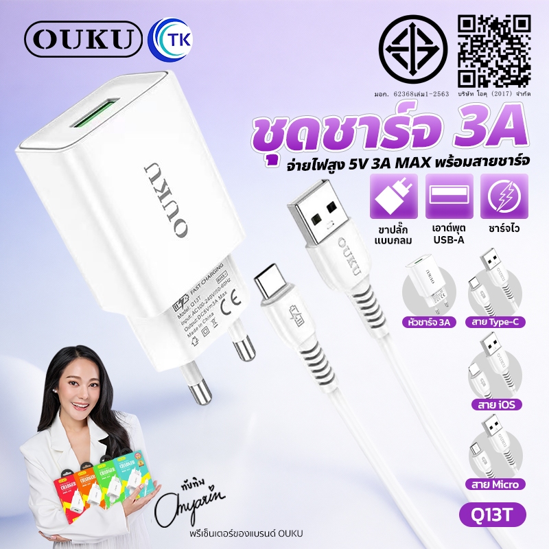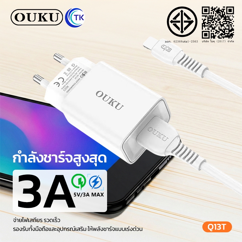 ถูกที่ส OUKU Q13 สายชาร์จพร้อมปลั๊ก ชาร์จเร็ว Charger Set Fast Charging 2.4A ชาร์จไวจ่ายไฟแรง สำหรับ for L/Micro/type-c