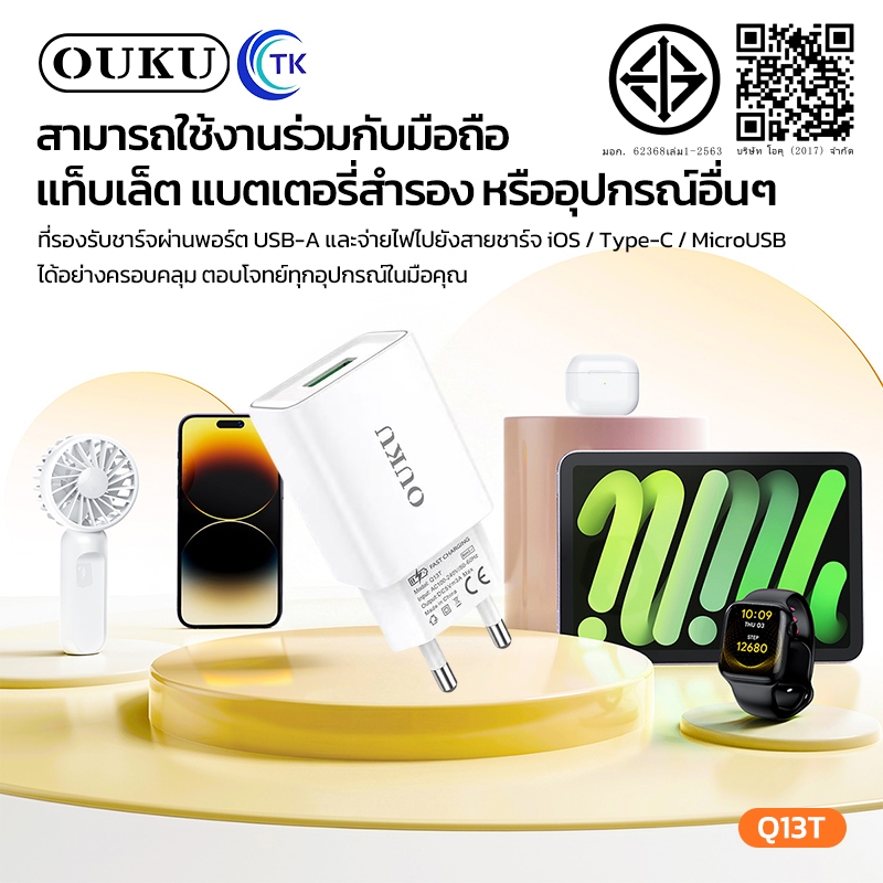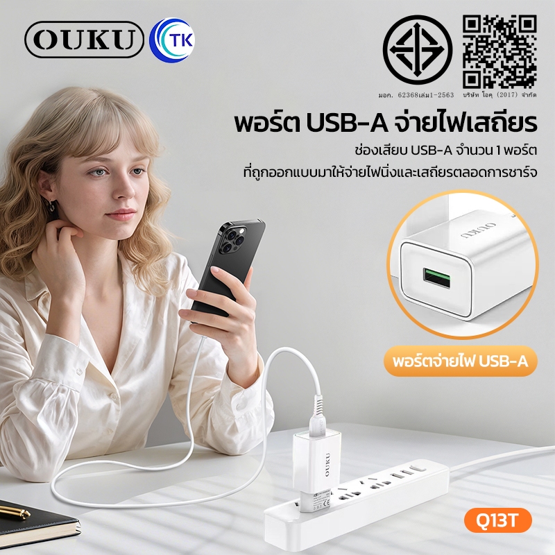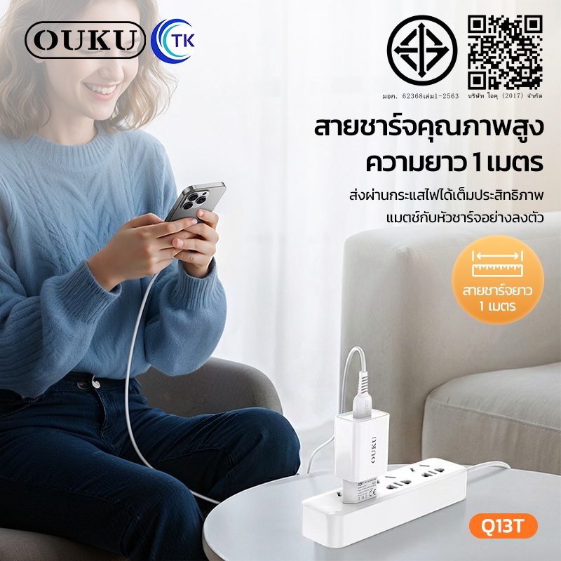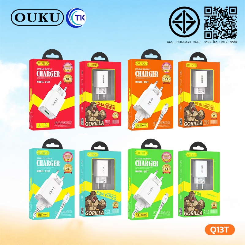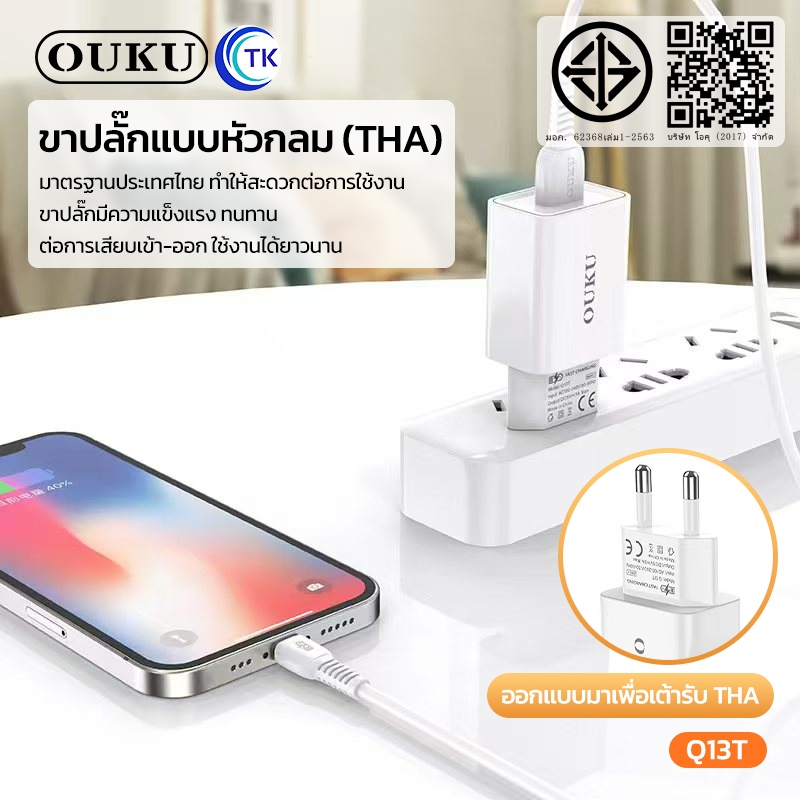 ถูกที่ส OUKU Q13 สายชาร์จพร้อมปลั๊ก ชาร์จเร็ว Charger Set Fast Charging 2.4A ชาร์จไวจ่ายไฟแรง สำหรับ for L/Micro/type-c