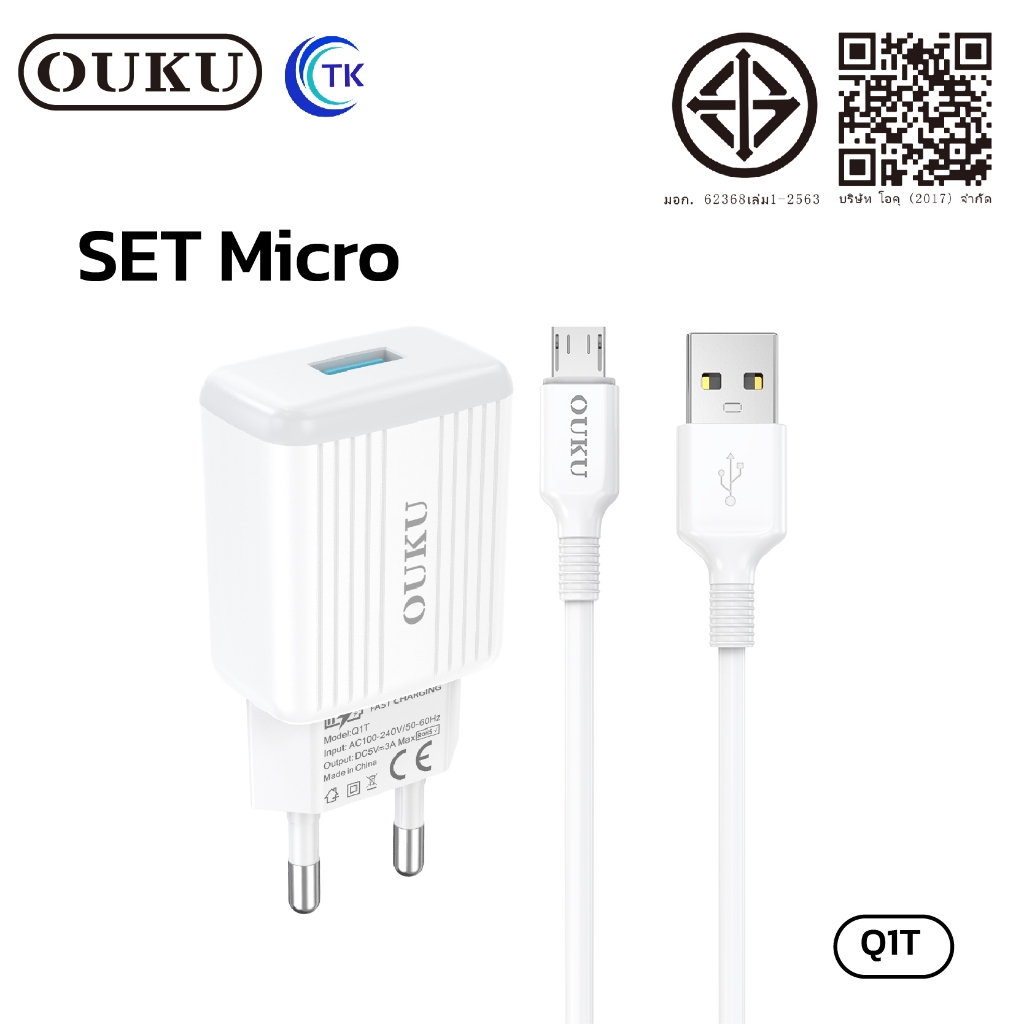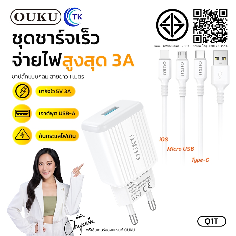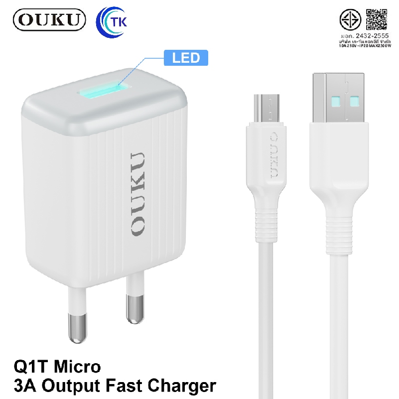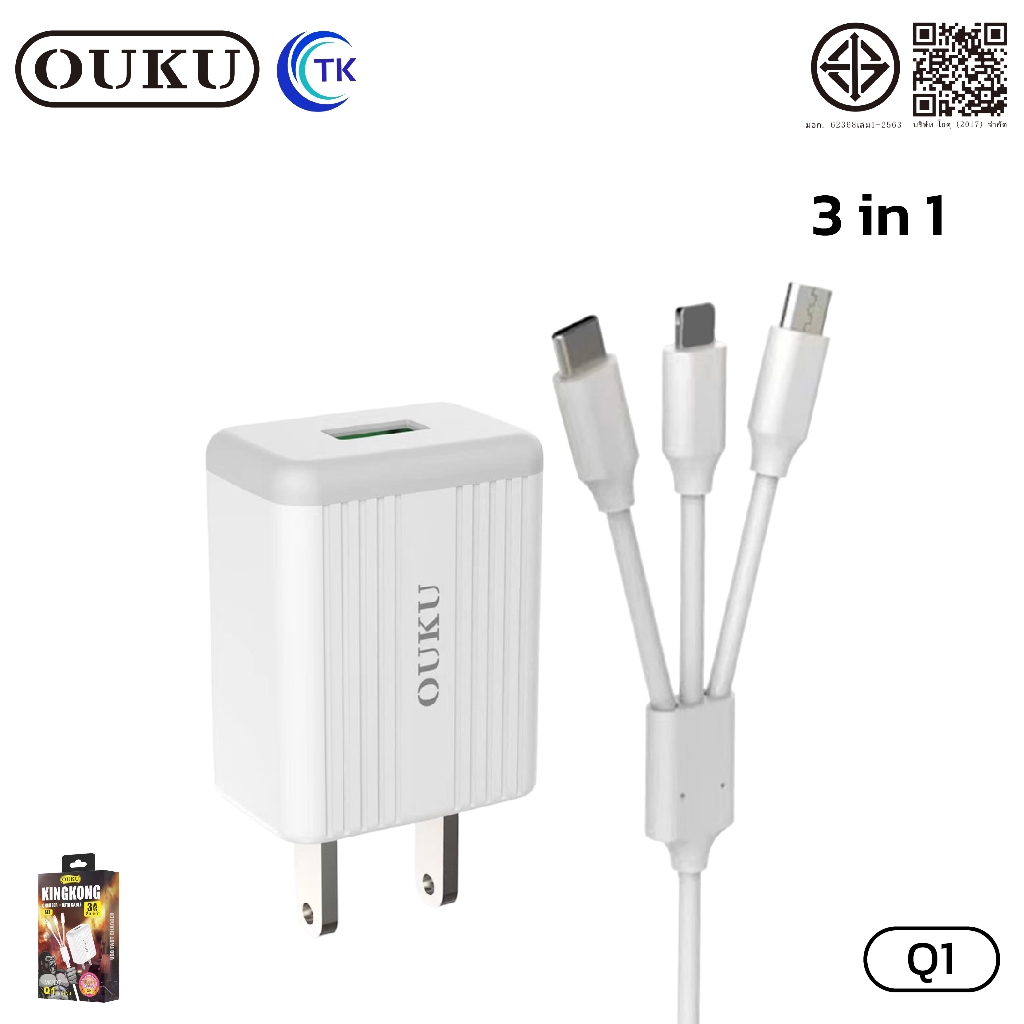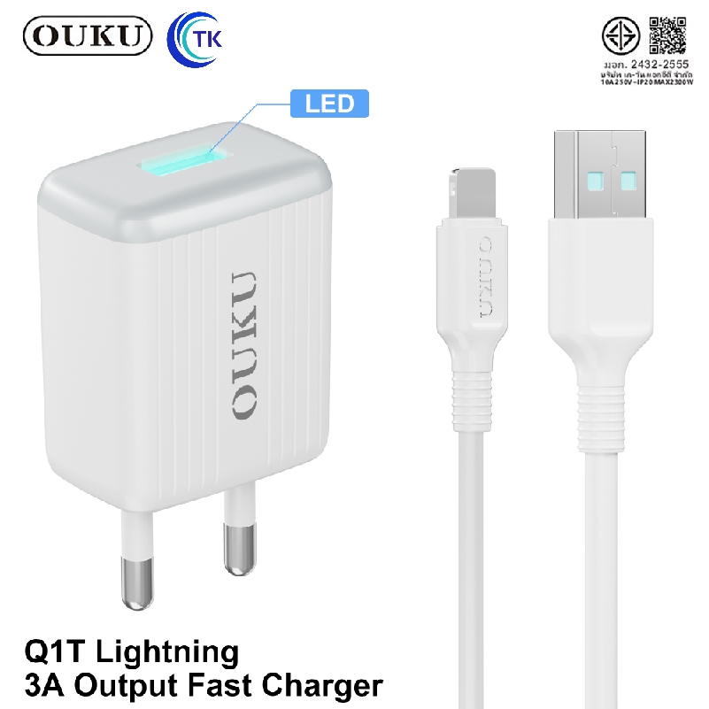 ถูกที่สุด OUKU Q1 สายชาร์จพร้อมปลั๊ก ชาร์จเร็ว Charger Set Fast Charging 2.4A 3A สำหรับ สำหรับ L/Micro USB/Type C/3in1