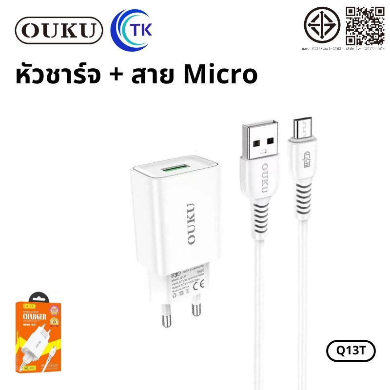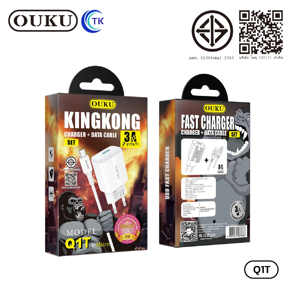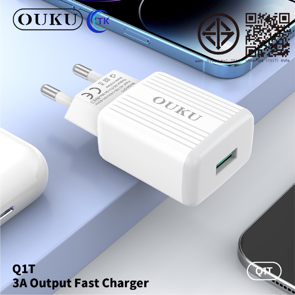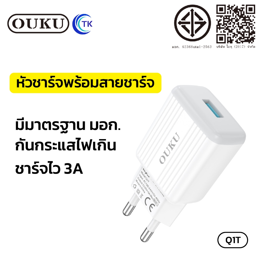 ถูกที่สุด OUKU Q1 สายชาร์จพร้อมปลั๊ก ชาร์จเร็ว Charger Set Fast Charging 2.4A 3A สำหรับ สำหรับ L/Micro USB/Type C/3in1