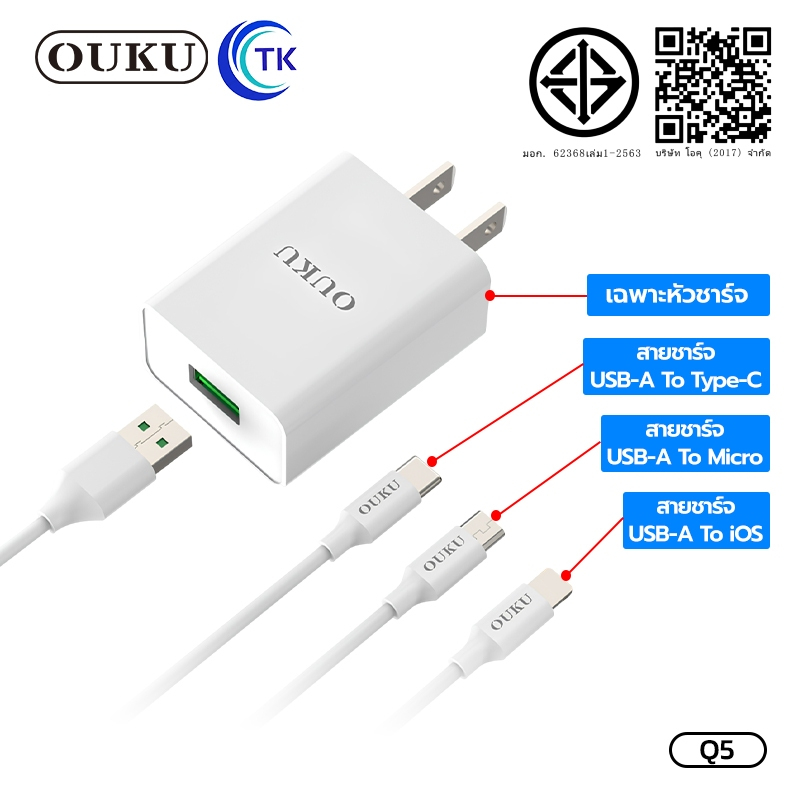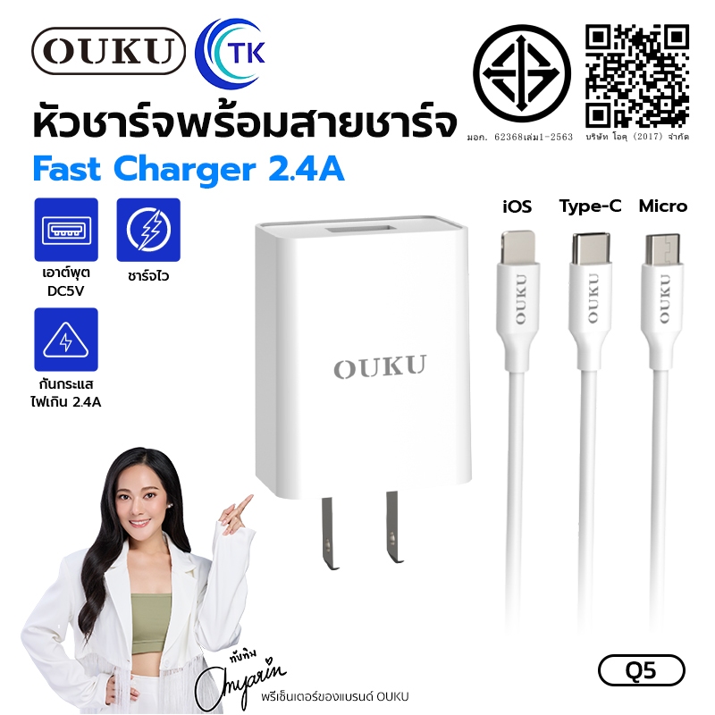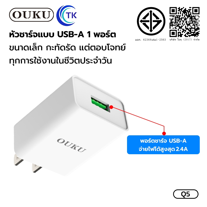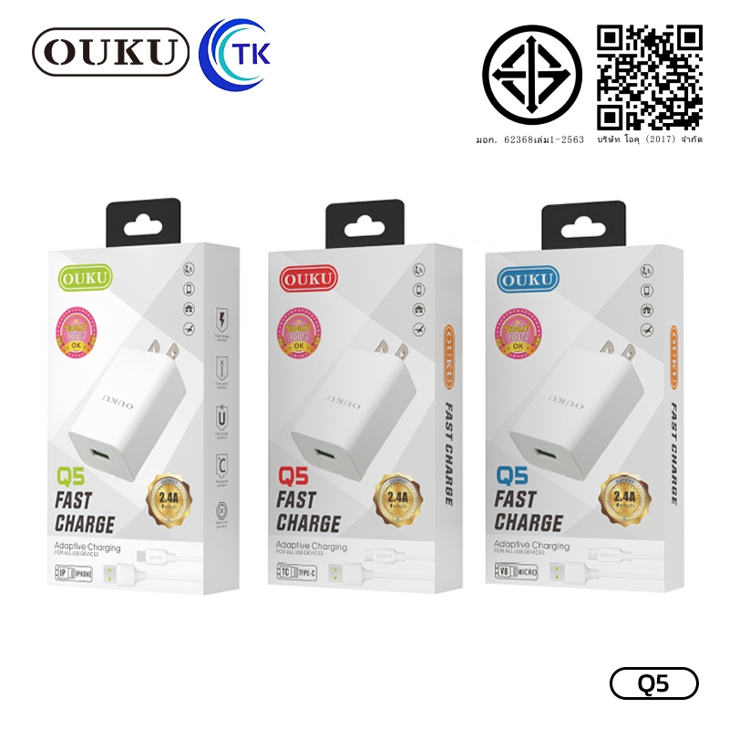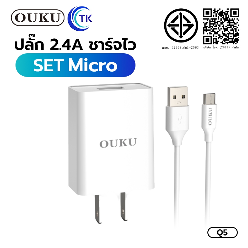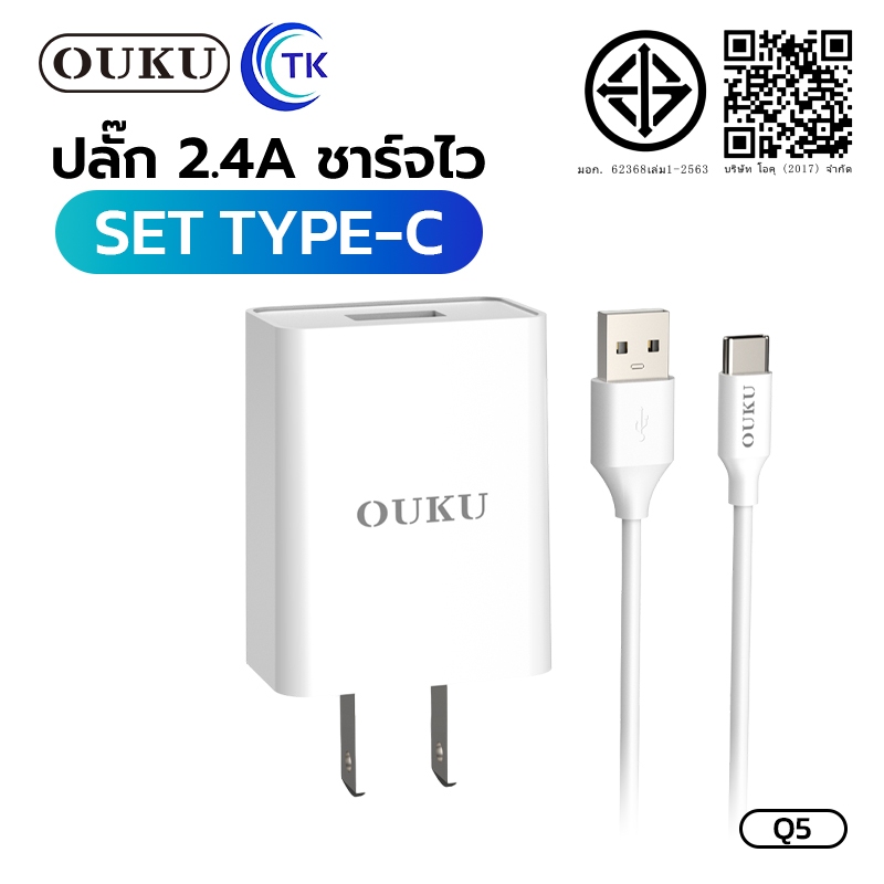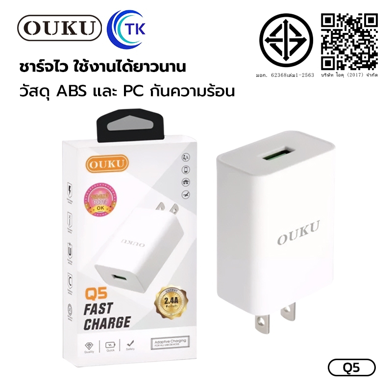 ปลั๊ก 2.4A OUKU Q5 ชาร์จเร็ว ราคาถูก ชุดชาร์จ fast charge หม้อแปลง ถูกสุดๆเลยจ้า
