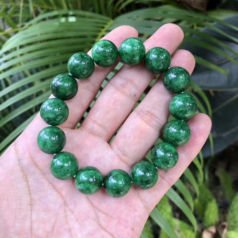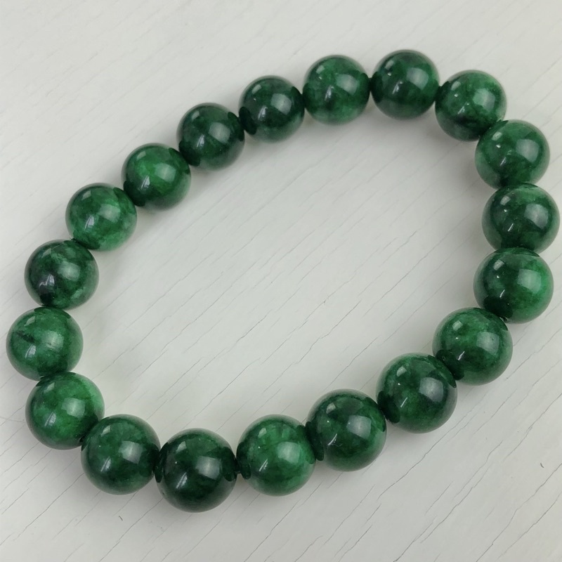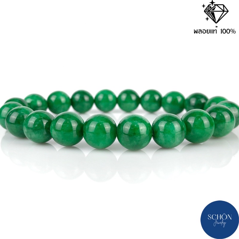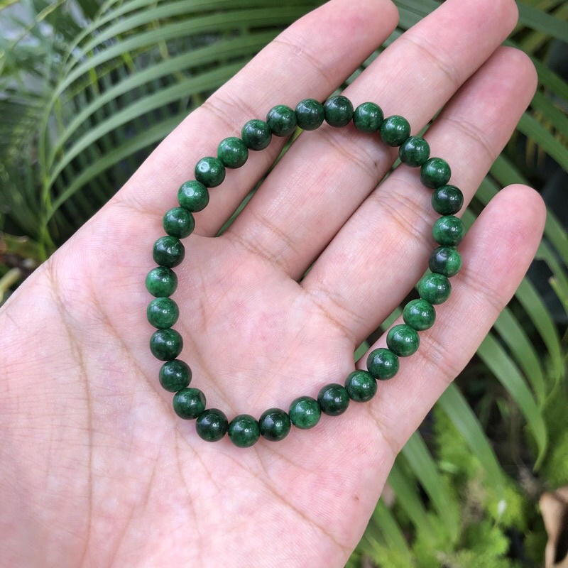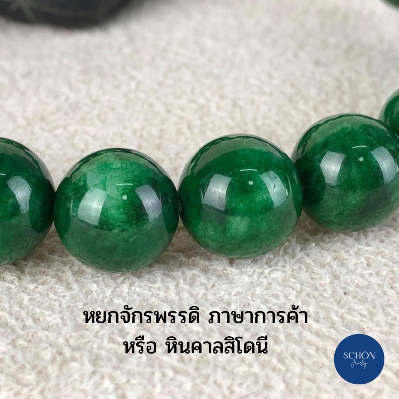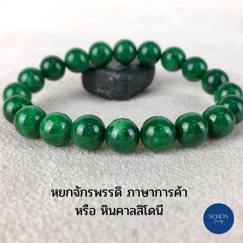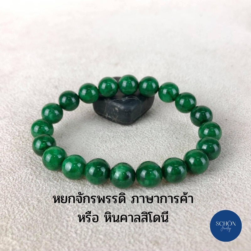 GCN สร้อยข้อมือหยก(กรีนคาลสิโดนี) กำไล ข้อมือ หยกจักรพรรดิ หินแท้ หินธรรมชาติ สร้อยข้อมือยืดได้