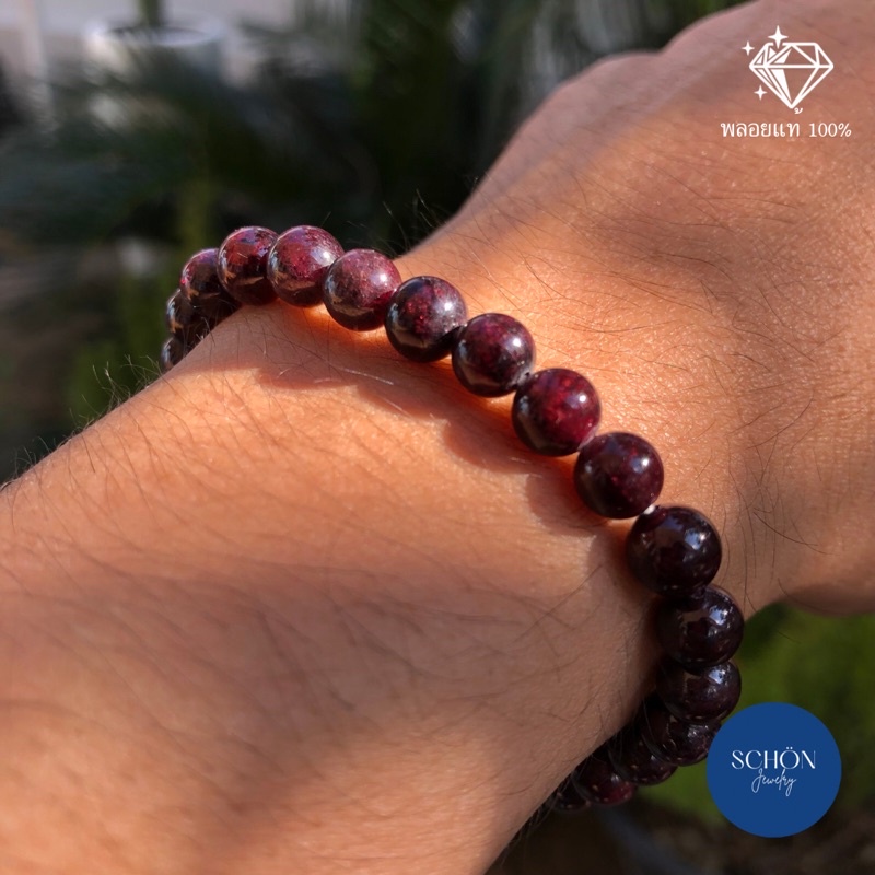 GN สร้อยข้อมือโกเมน สร้อยข้อมือ แดงแก่กล่ำ หินมงคล หินธรรมชาติ สีแดงเข้ม กำไลข้อมือ กำไลหิน กำไล หินมงคล