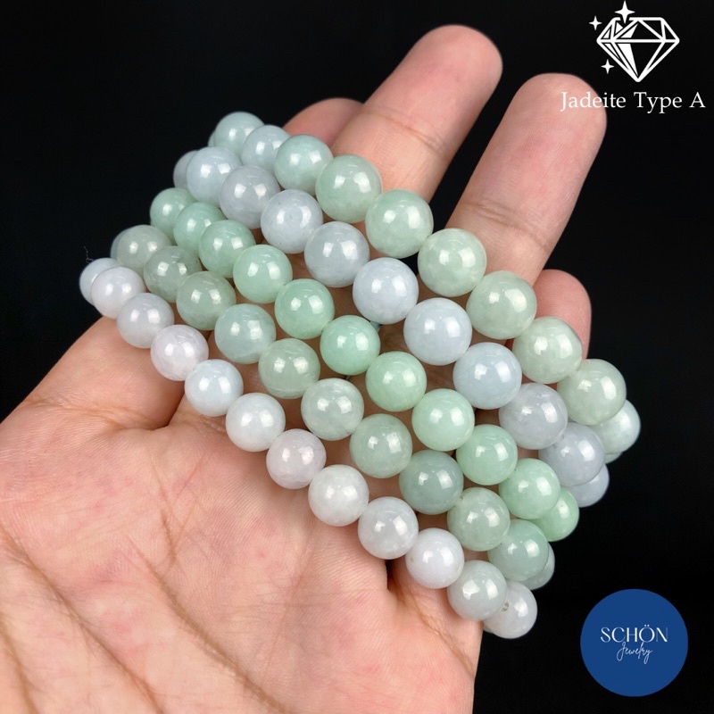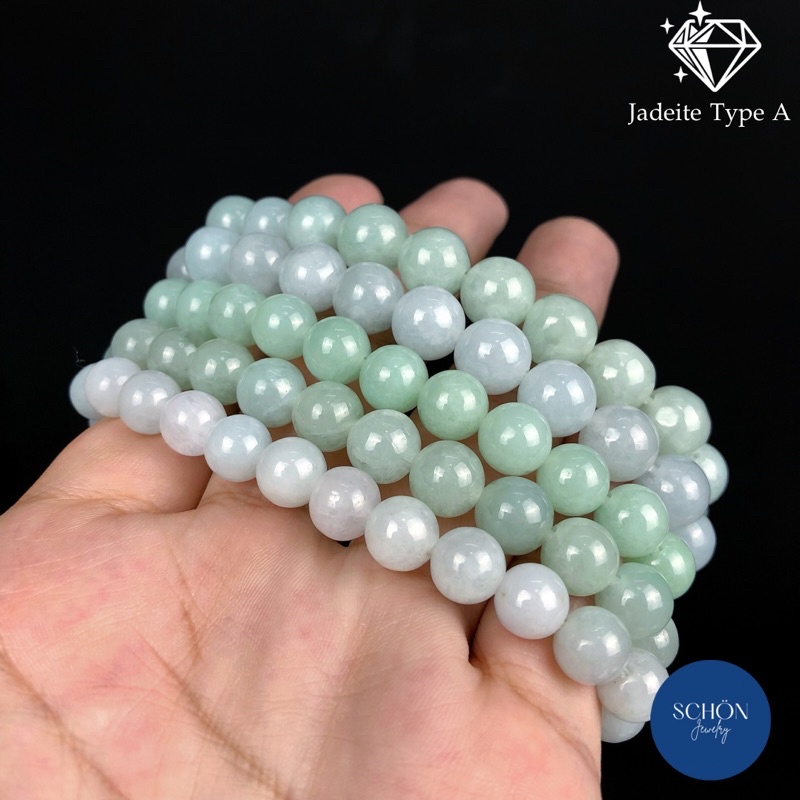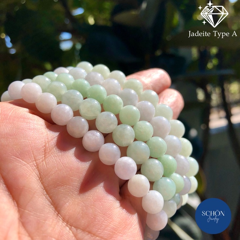 MXJA สร้อยข้อมือหยกแท้ กำไลหยกแท้ กำไลหยกพม่า Jadeite Type A พม่ ( รับประกันหยกพม่าแท้ตลอดชีพ )หยกแท้100