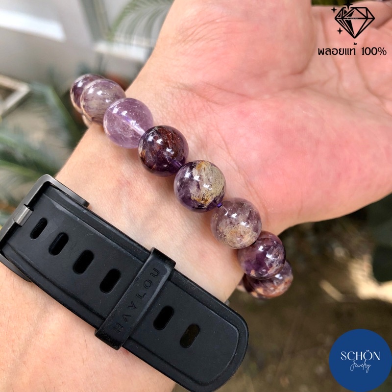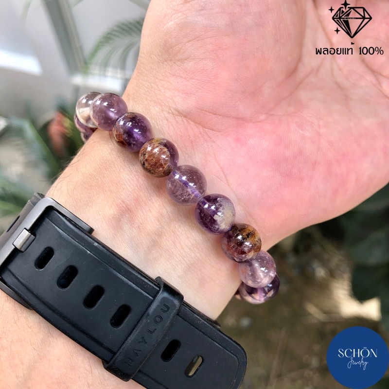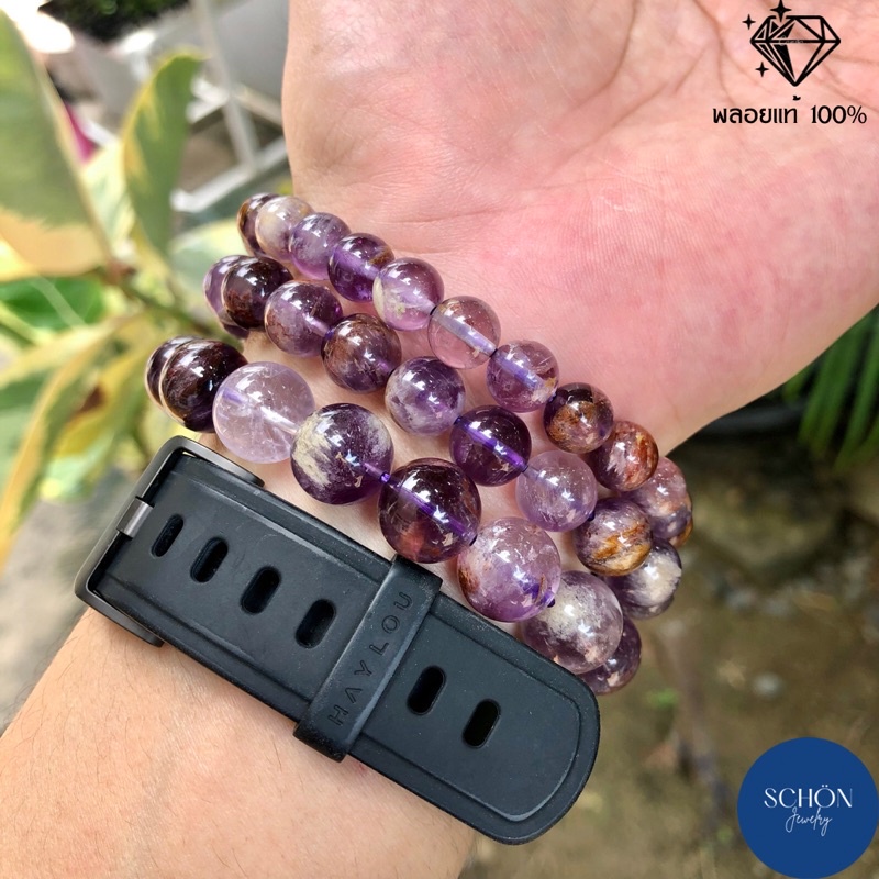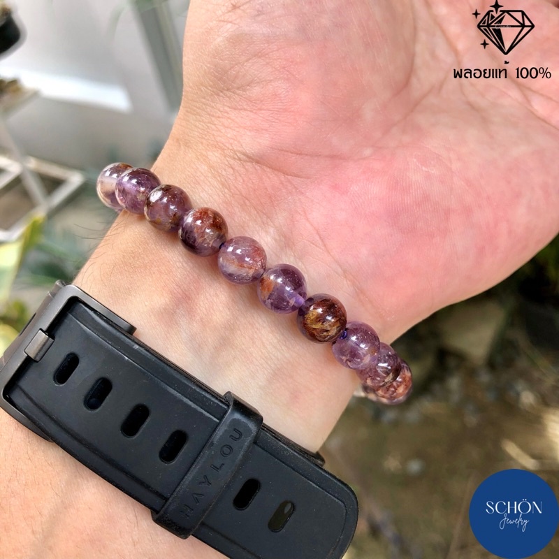 CCN สร้อยข้อมือโป่งข่ามอเมทิตส์ แก้วจอมนางขวัญ คาค็อกซิไนท์ ธรรมชาติ100%