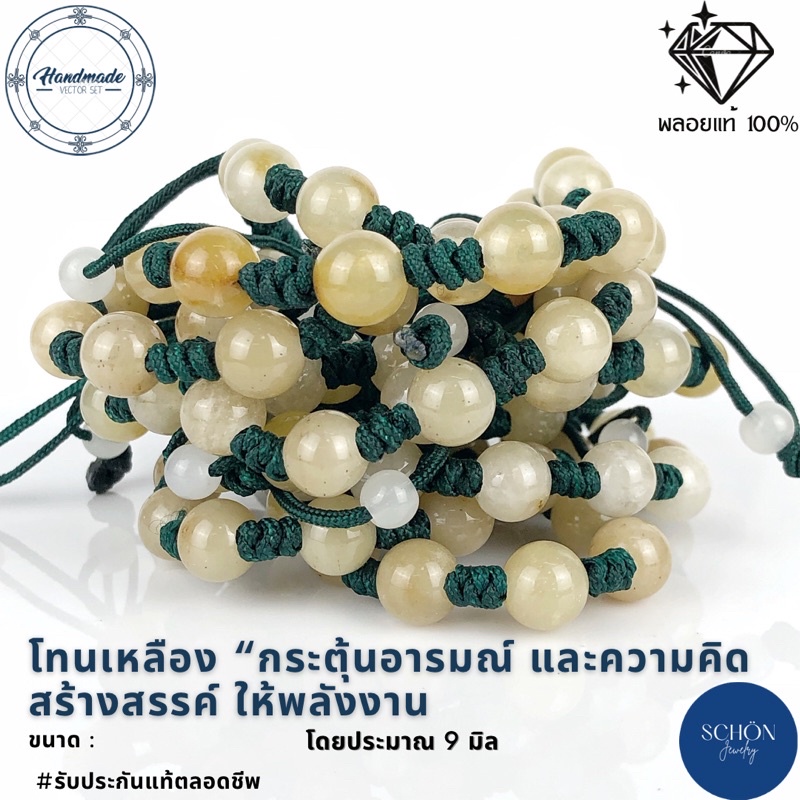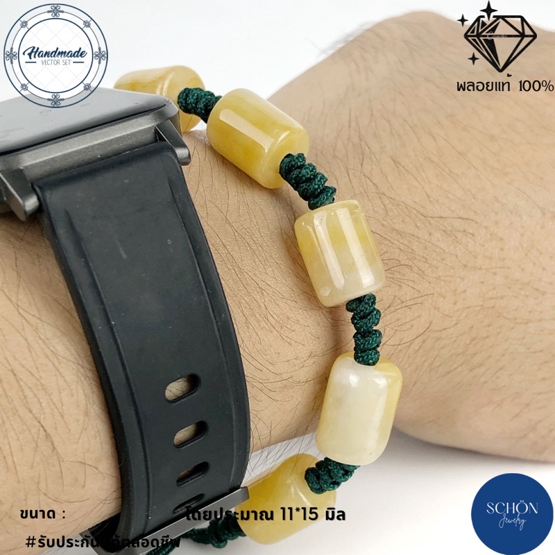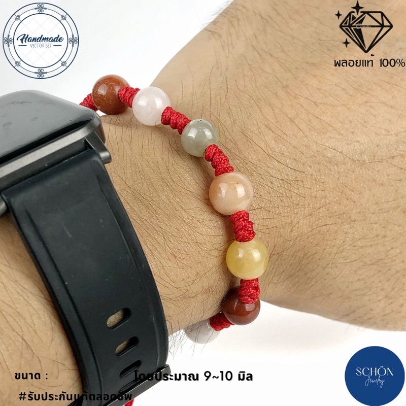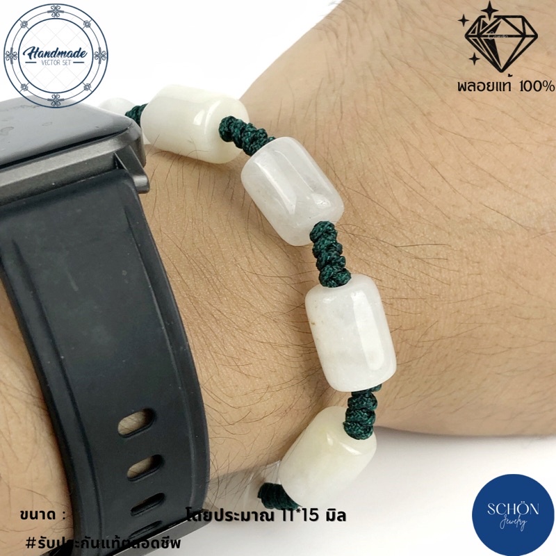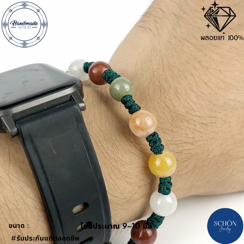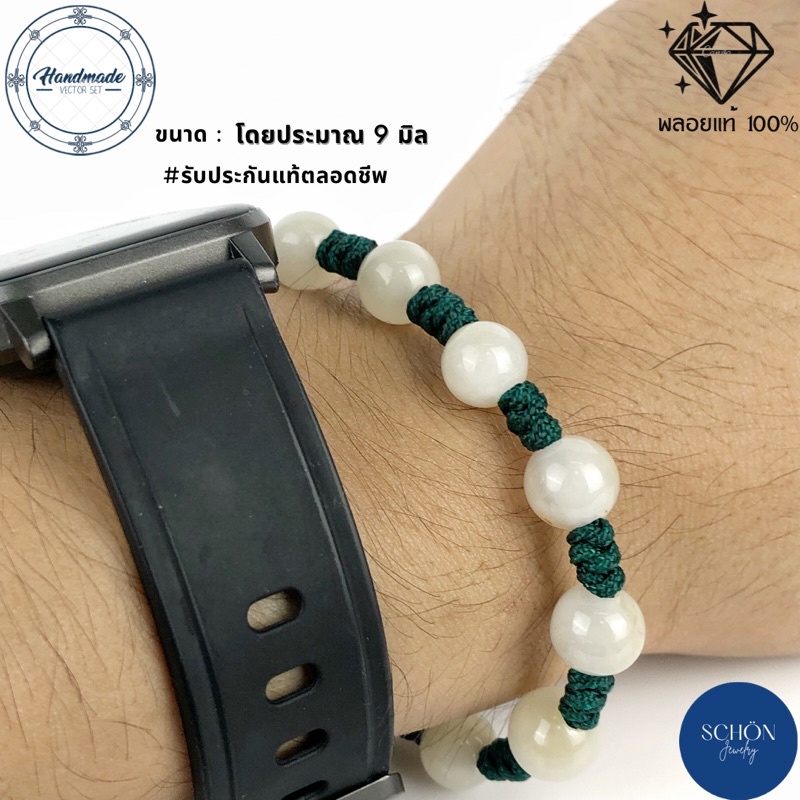 HJA-BI สร้อยข้อมือหยกแท้100% ฟรีไซส์ กำไลเชือกถัก ปรับขนาดได้