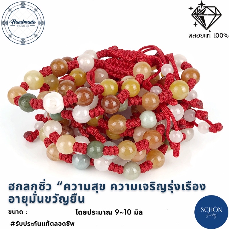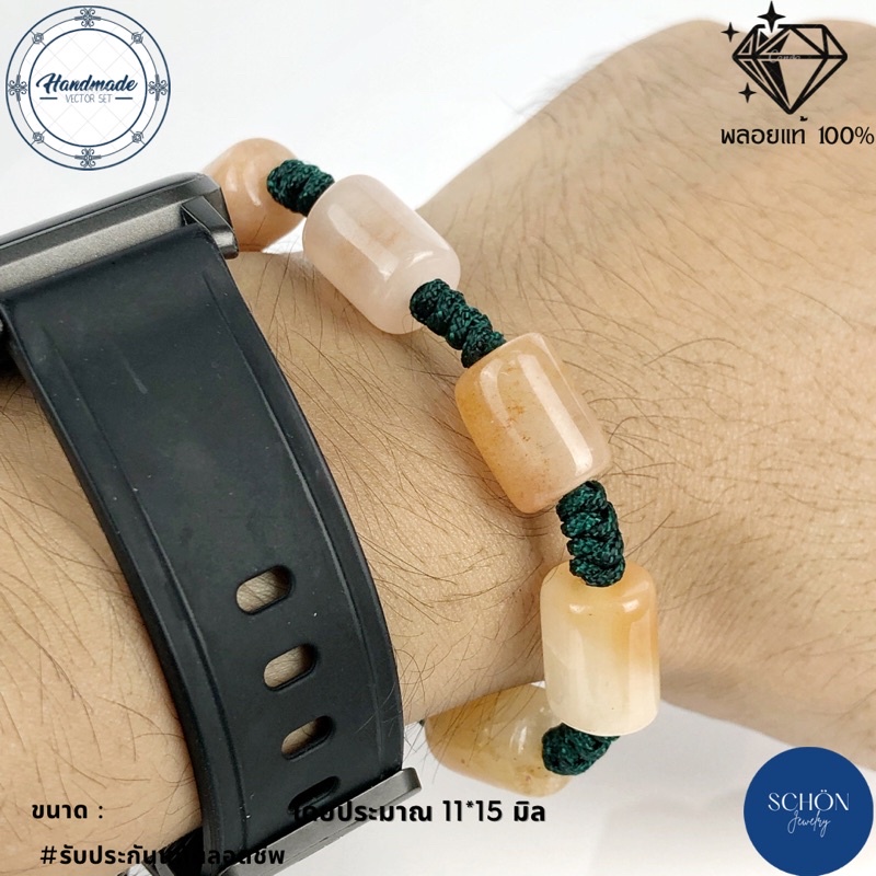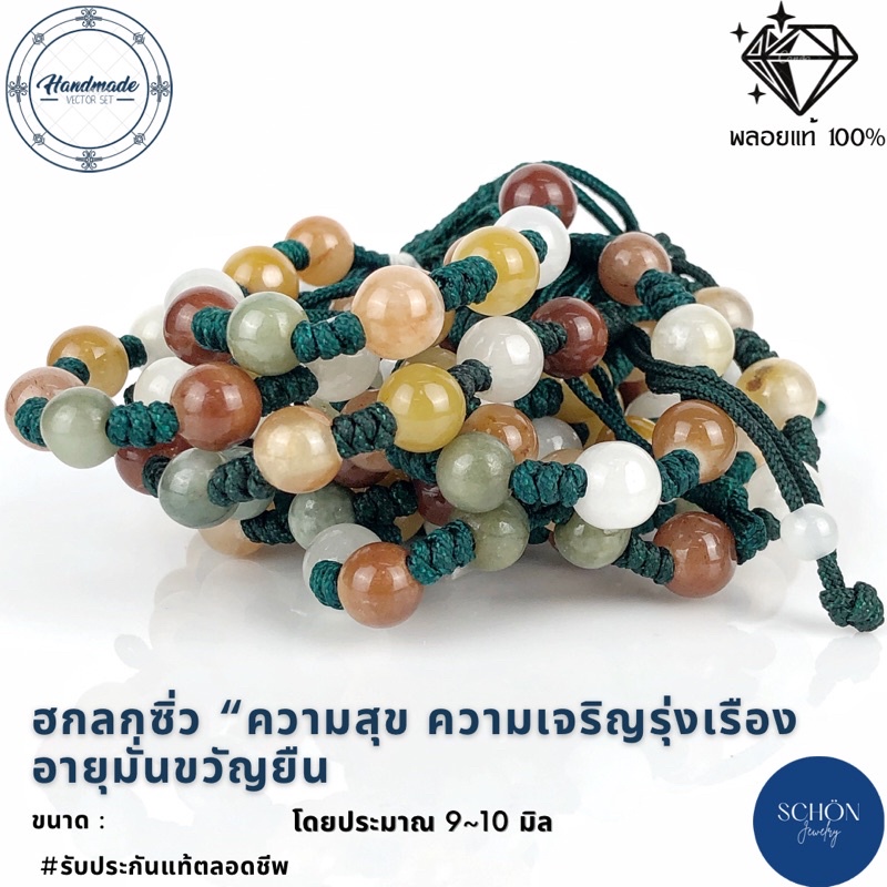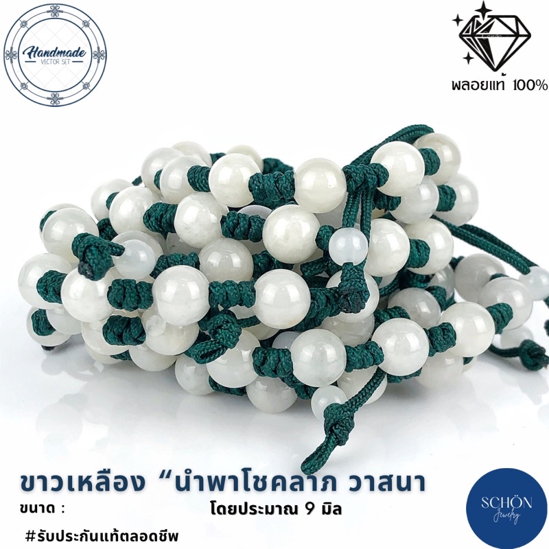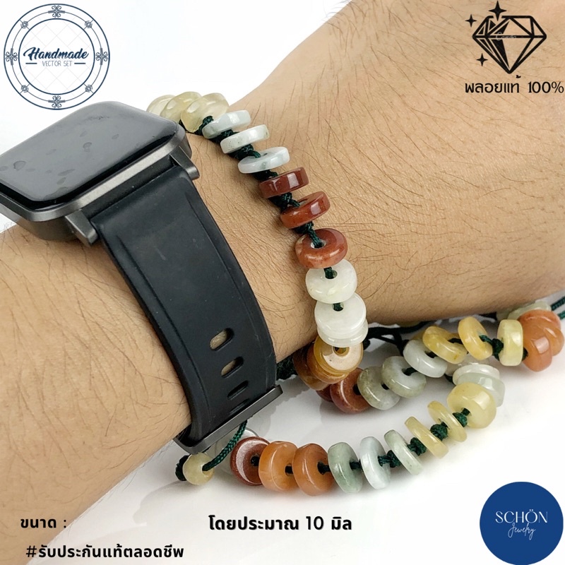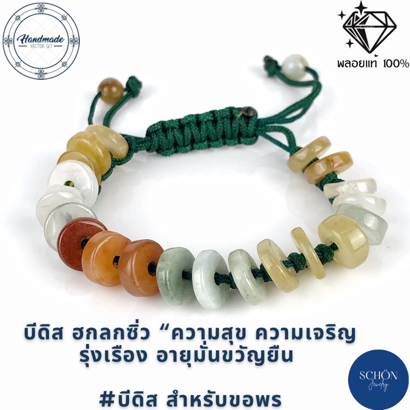 HJA-BI สร้อยข้อมือหยกแท้100% ฟรีไซส์ กำไลเชือกถัก ปรับขนาดได้