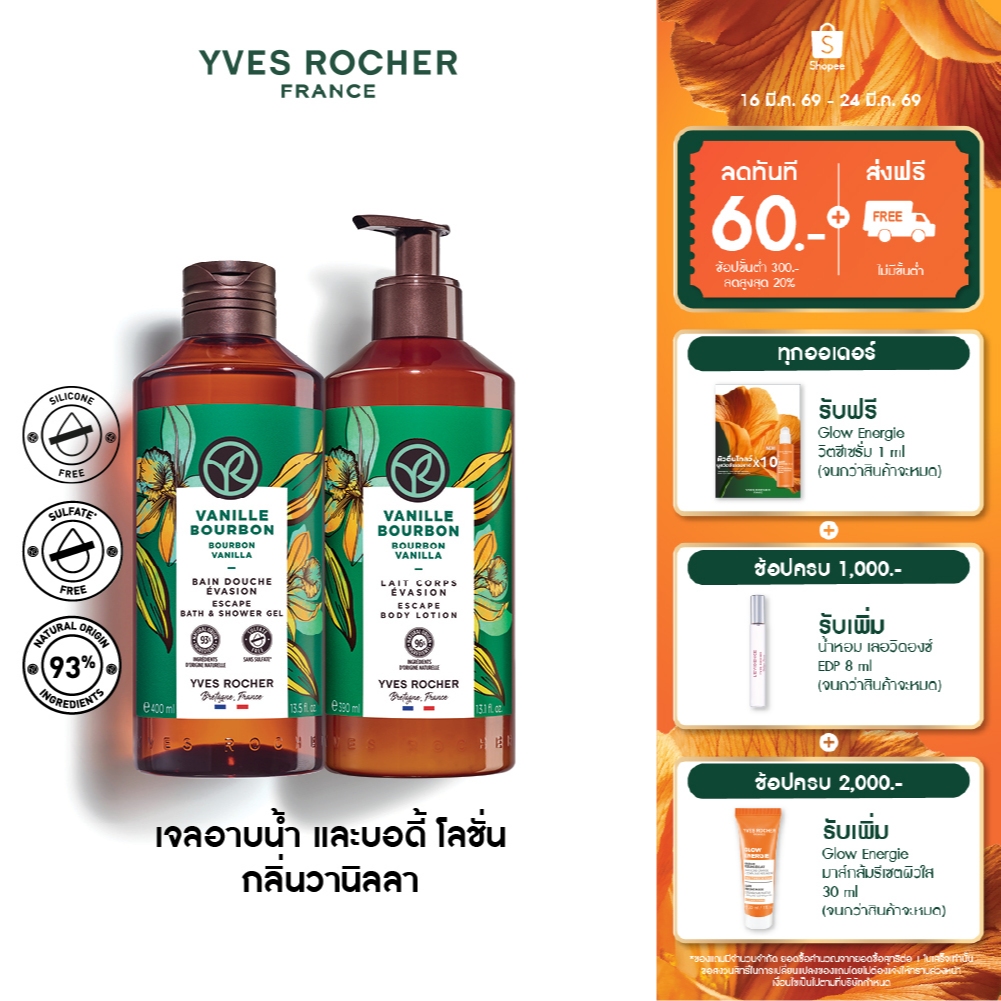 [แพ็คคู่] อีฟ โรเช Yves Rocher Bourbon Vanilla Escape Body Lotion 390 มล. & Shower Gel 400 มล.