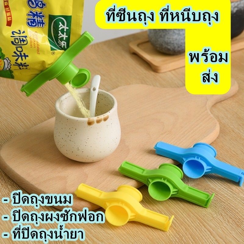 ที่หนีบถุงแบบคละสี มีฝาเปิดปิด ขนม ผงซักฟอก น้ำยาปรับผ้านุ่ม