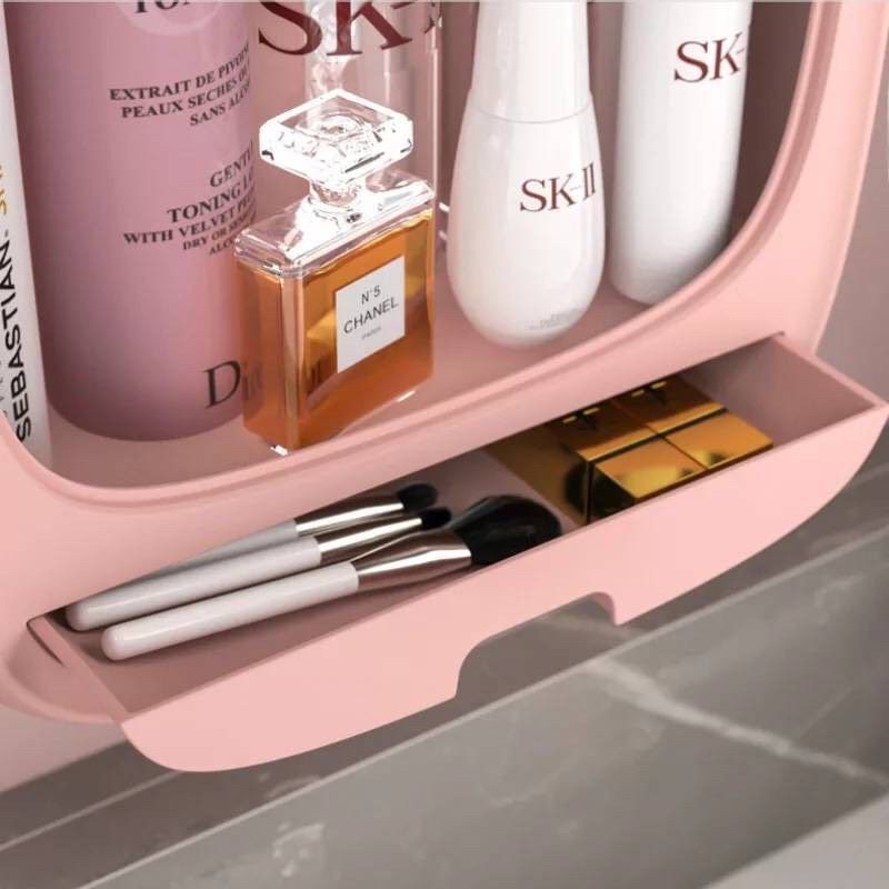 กล่องเก็บเครื่องสําอางค์ ชั้นวางเครื่องสำอางค์ แบบติดผนังไม่ต้องเจาะรู