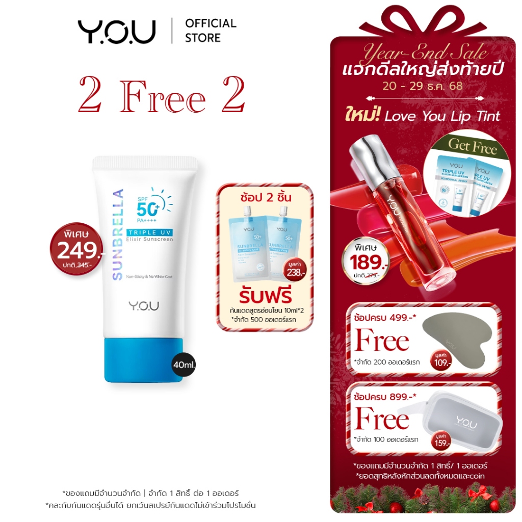 YOU Sunbrella Triple UV Elixir Sunscreen SPF50+ PA++++ ครีมกันแดดสูตรน้ำ เนื้อบางเบาไม่ทิ้งคราบป้องกันผิวจากรังสีUVA UVB