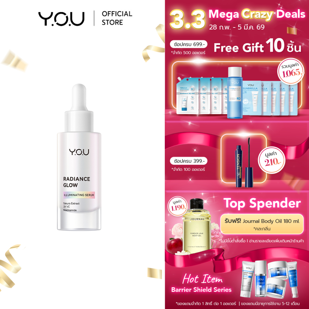 YOU Radiance Glow Illuminating Serum เซรั่มเนื้อบางเบา ปลอบประโลมผิวแพ้ง่ายให้ผิวดูกระจ่างใส ฉ่ำโกลว์