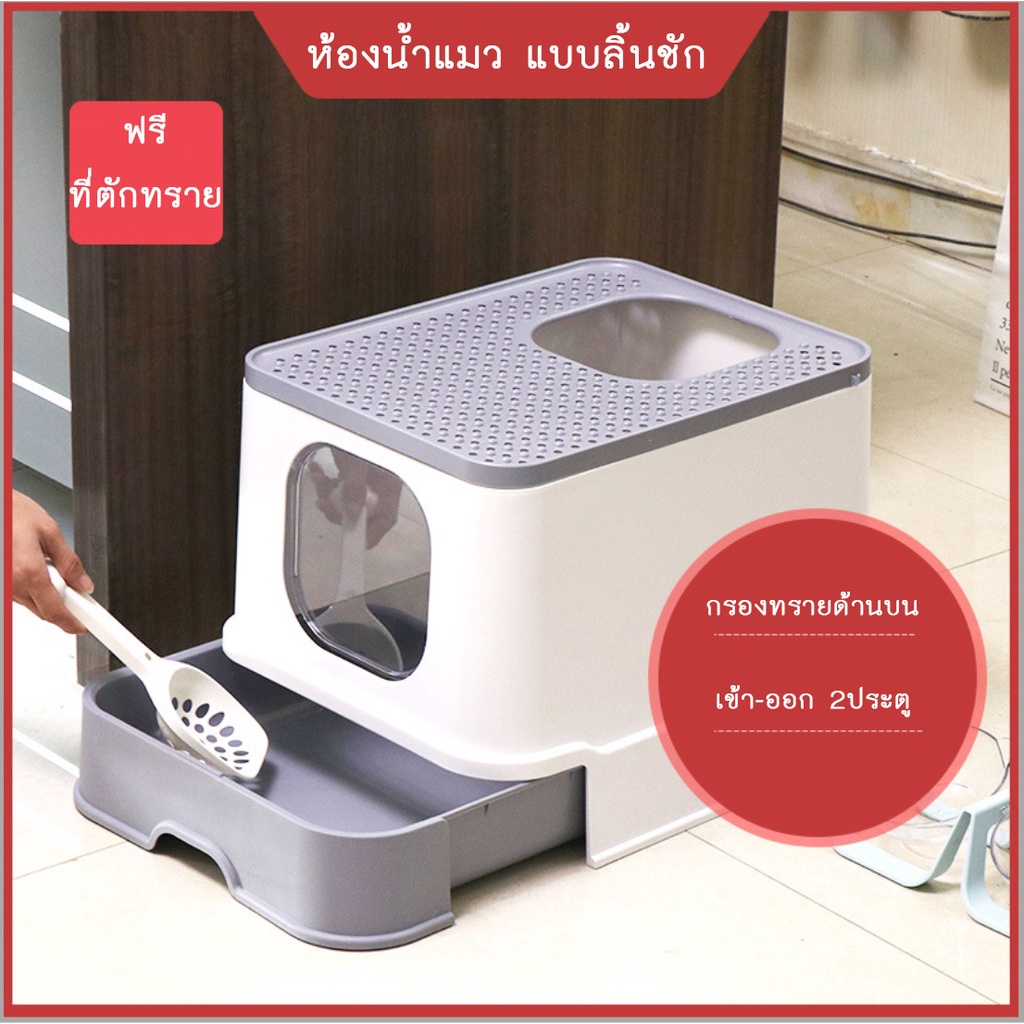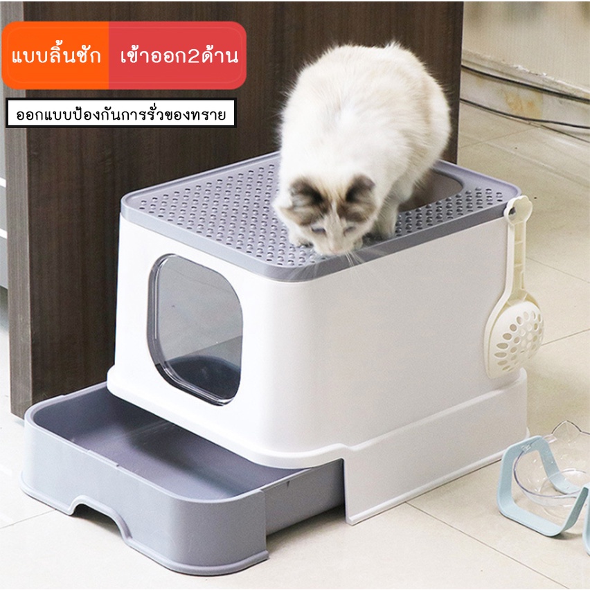 AL-146 ห้องน้ำแมวทรงสี่เหลี่ยม ระบบลิ้นชัก เเถมที่ตักทราย กระบะทรายแมว ห้องน้ำแมว สินค้าผ่านการฆ่าเชื้อ 🔥 พร้อมส่ง 🔥