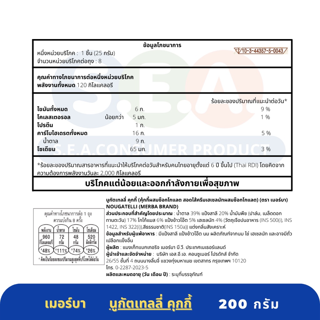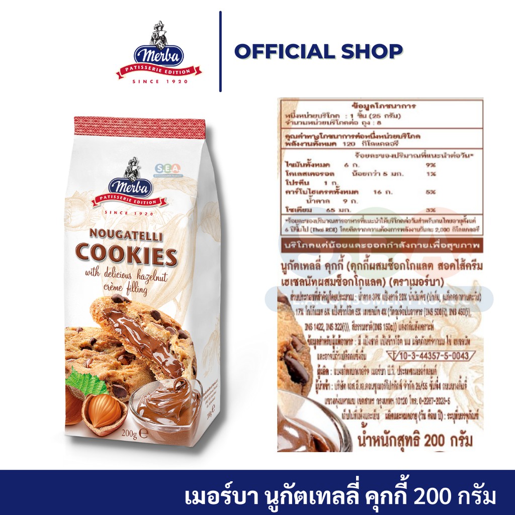 Merba เมอร์บา คุกกี้ นูกัตเทลลี่สอดไส้ครีมเฮเซลนัทผสมช็อกโกแลต Nougatelli Cookies 200g.|Exp: 28 May 2026