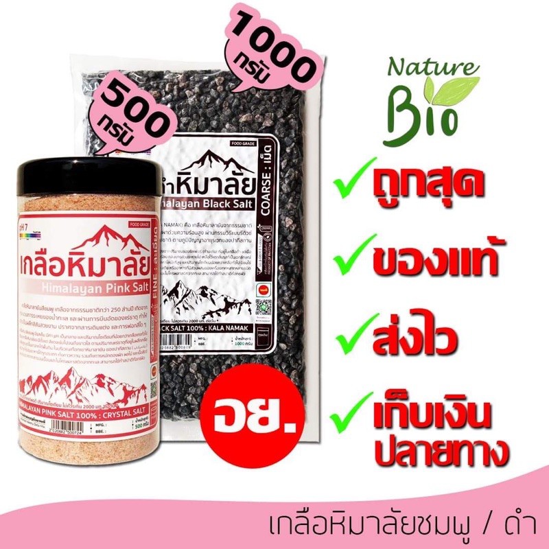 🔥BIOCMID23 ลด 5.-🔥เกลือหิมาลัยดำ ชมพู เกลือหิมาลัย แบบเกล็ด แบบละเอียด แบบผง น้ำหนัก 500 กรัม/ 1 กิโลกร