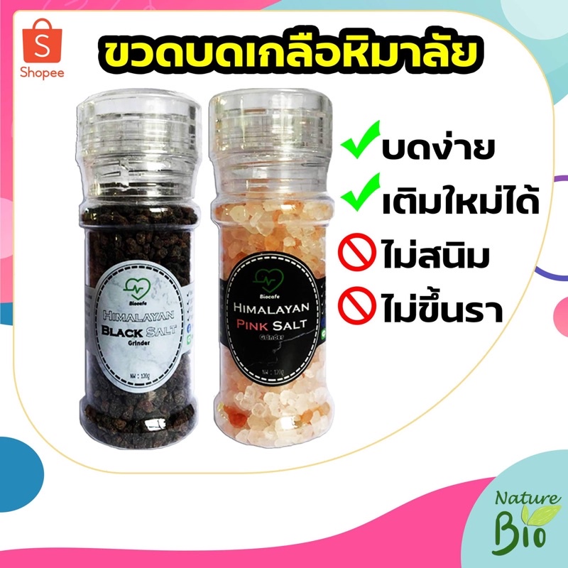 🔥BIOCMID23 ลด 5.-🔥เกลือหิมาลัยชมพู เกลือหิมาลัยดำ ขวดฝาบด 120 กรัม รีฟิลได้