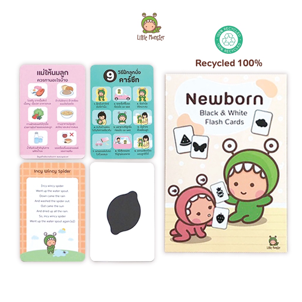 Newborn Flash Card | Little Monster | แฟลชการ์ดกระตุ้นพัฒนาการ 0-6 เดือน | การ์ดขาวดำ | Sensory Cube