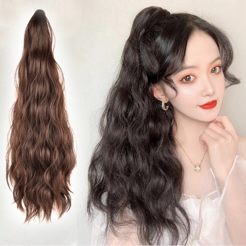 แฮร์พีช หางม้า ผมปลอมหางม้าแบบผูก-หนีบเหมือนผมจริง มีโบว์ผูก น่ารักมี 3 สี แบบผมลอน ดูเป็นธรรมชาติ พร้อมส่งจากไทย