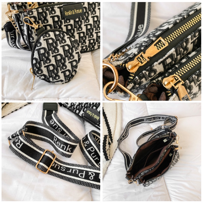 กระเป๋าสะพายข้าง เซ็ท3ใบ คุ้มมาก กระเป่าแฟชั่น ผ้าแคนวาสปักลาย สายปรับได้ แฟชั่นสไตล์เกาหลี