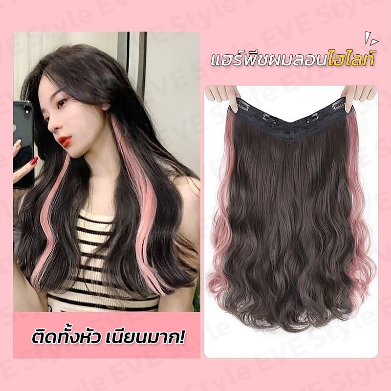 วิกผมไฮไลท์ แอร์พีช แบบแพ ผมลอนไฮไลท์ แฮร์พีชไฮไลท์ ลอนคลายๆ ลอนมาม่า ไหมนิ่ม ไม่โป๊ะ