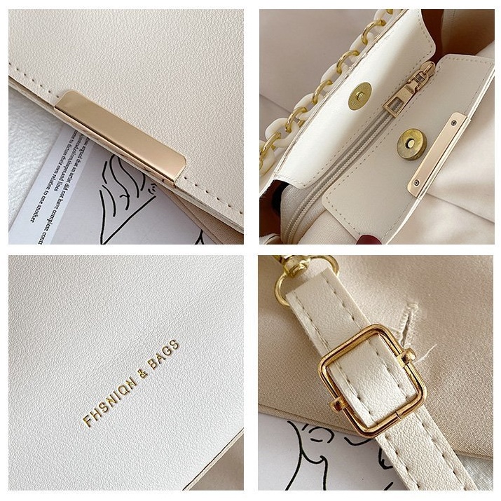 กระเป๋าสะพายข้าง กระเป๋าแฟชั่น หนังPU อะไหล่โซ่ทอง มีซิป มีแม่เหล็กล็อค สายปรับได้ รุ่นใหม่ 2025