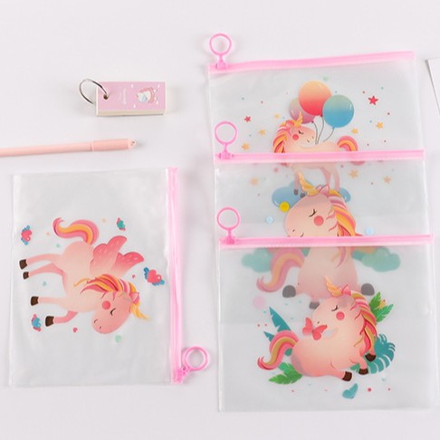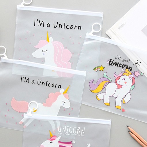 กระเป๋าใส่ของอเนกประสงค์ หนัง PVC กันน้ำได้ มีซิปล็อค ลายม้ายูนิคอร์นสุดน่ารัก
