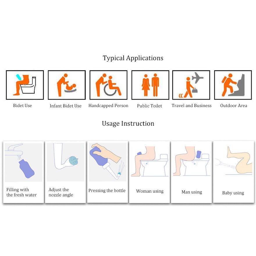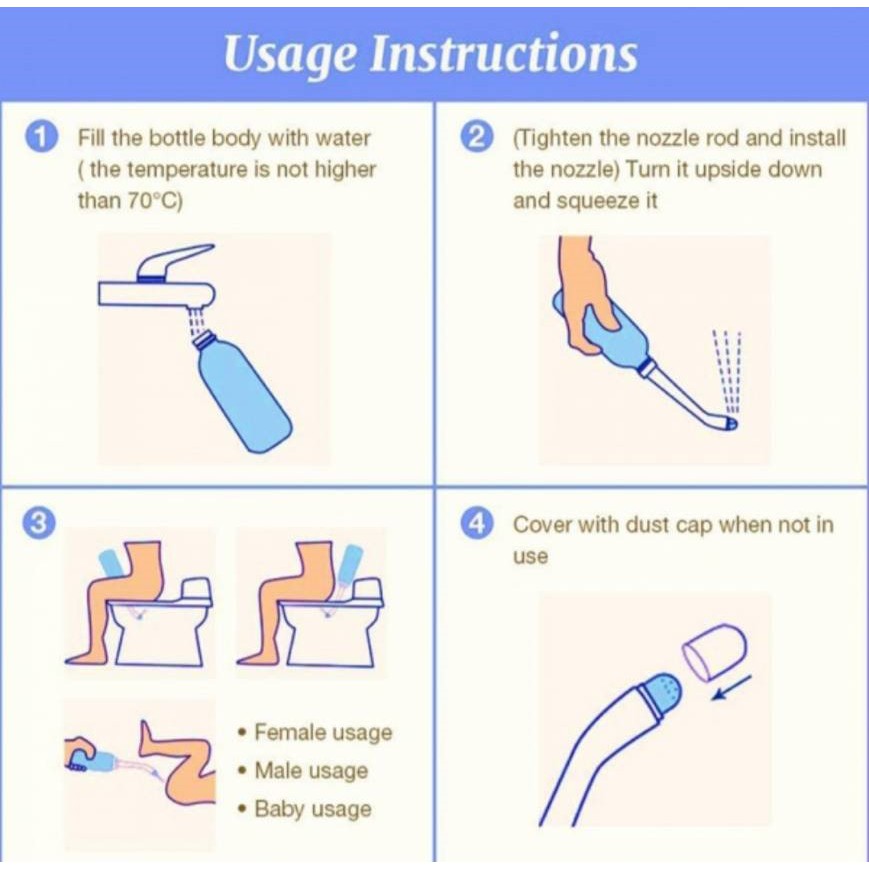 ที่ฉีดชำระแบบพกพา ฉีดขวด ฉีดก้นแบบพกพา กระบอกฉีดชำระ ล้างก้นเด็ก 500ml พกพาสะดวก สะอาด พร้อมถุงผ้าสำหรับจัดเก็บ