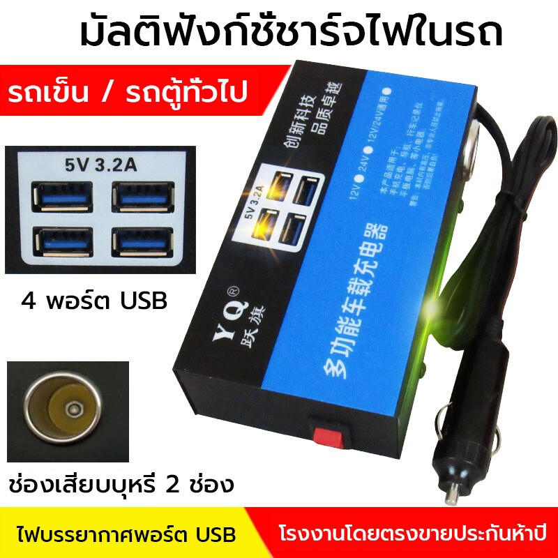 (ของแท้ 100%) 6USB อินเวอร์เตอร์ ในรถยนต์หม้อแปลงไฟ 12v 24Vเป็น 220 รถยนต์ / รถบรรทุก ตัวแปลงไฟในรถให้เหมือนไฟบ้าน