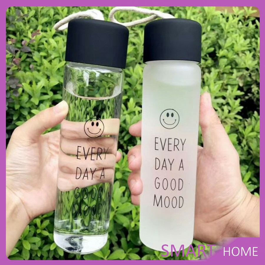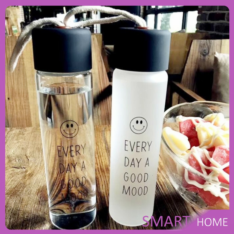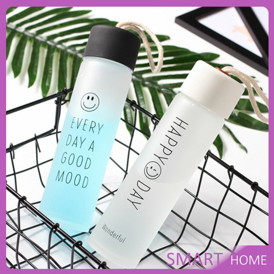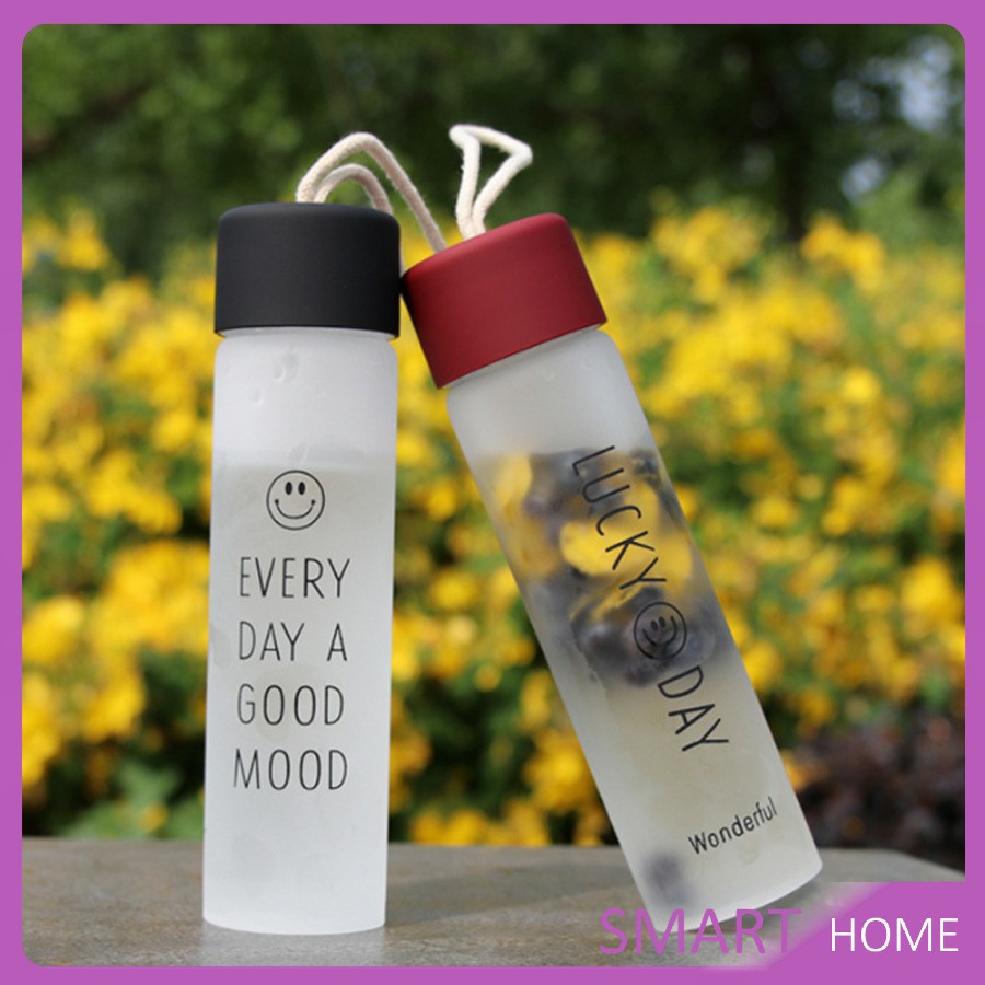 ขวดแก้วใส่น้ำดื่มพกพา กระบอกใส่น้ำ 350 ml มีสายคล้องมือ พกพาสะดวก Portable glass
